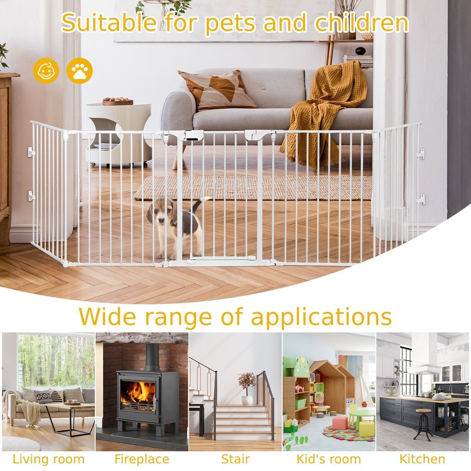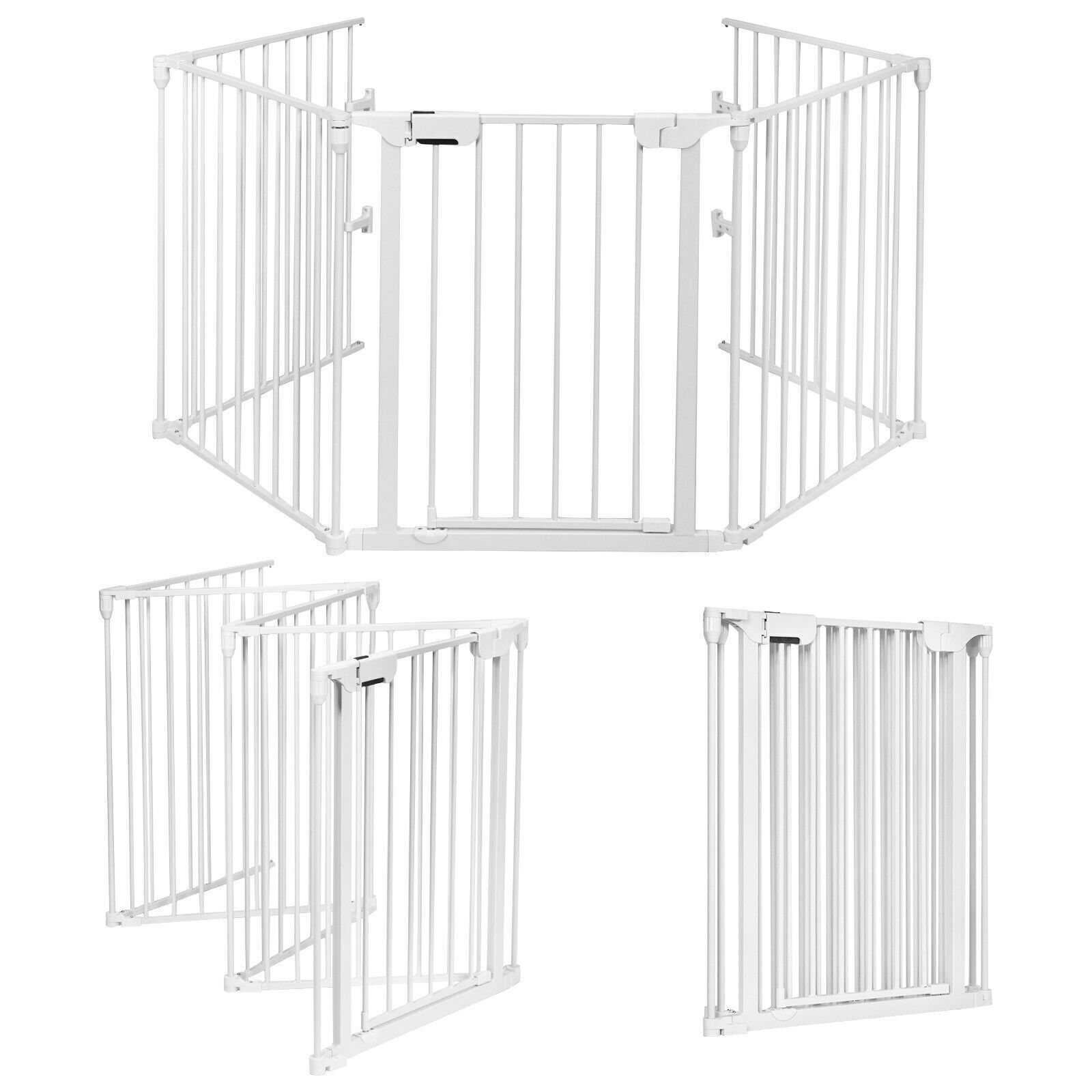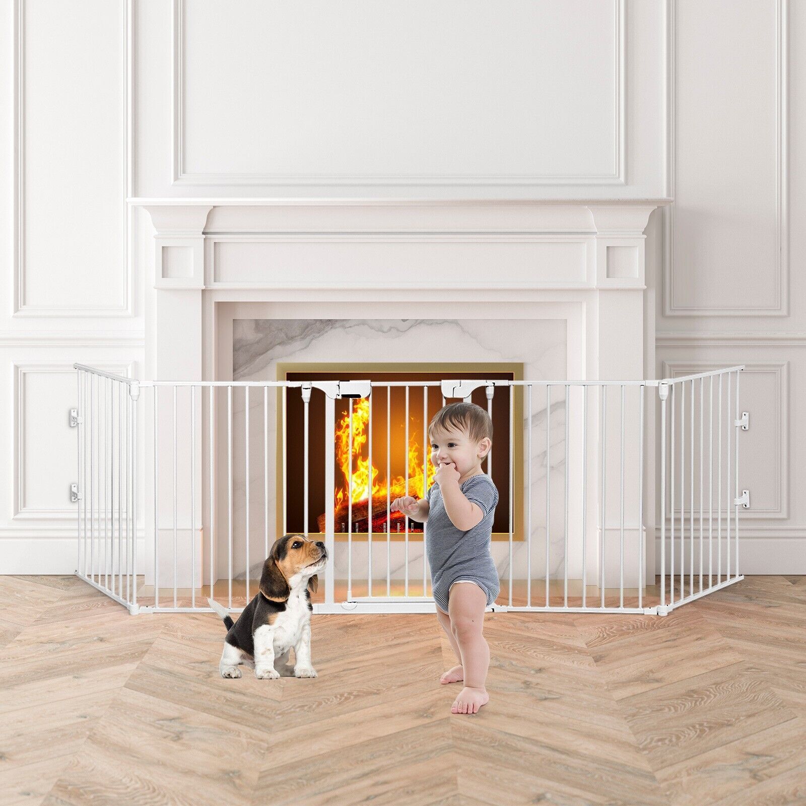5-panel Metal Baby Pet Playpen Fireplace Fence Safety Fence Lockable Gate White