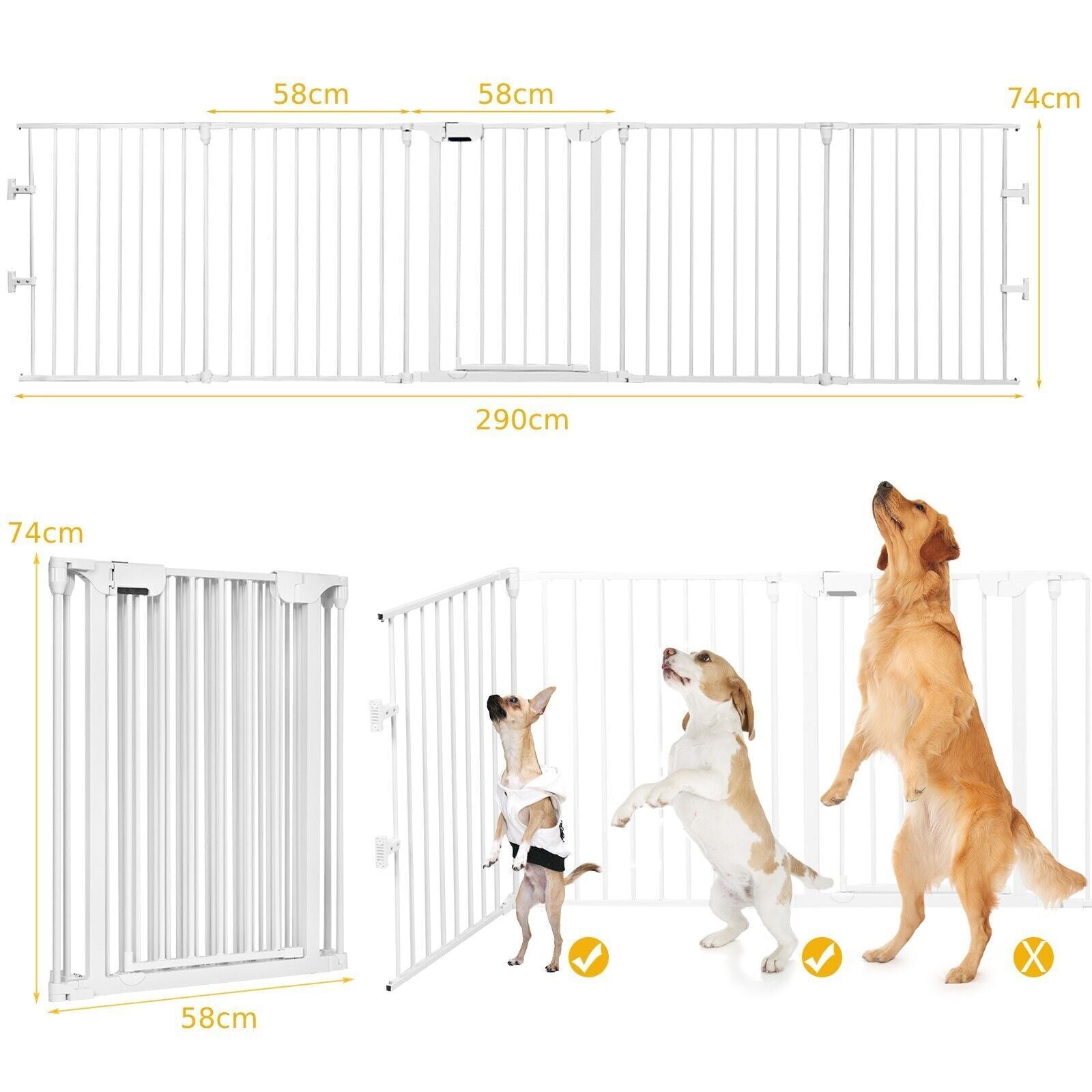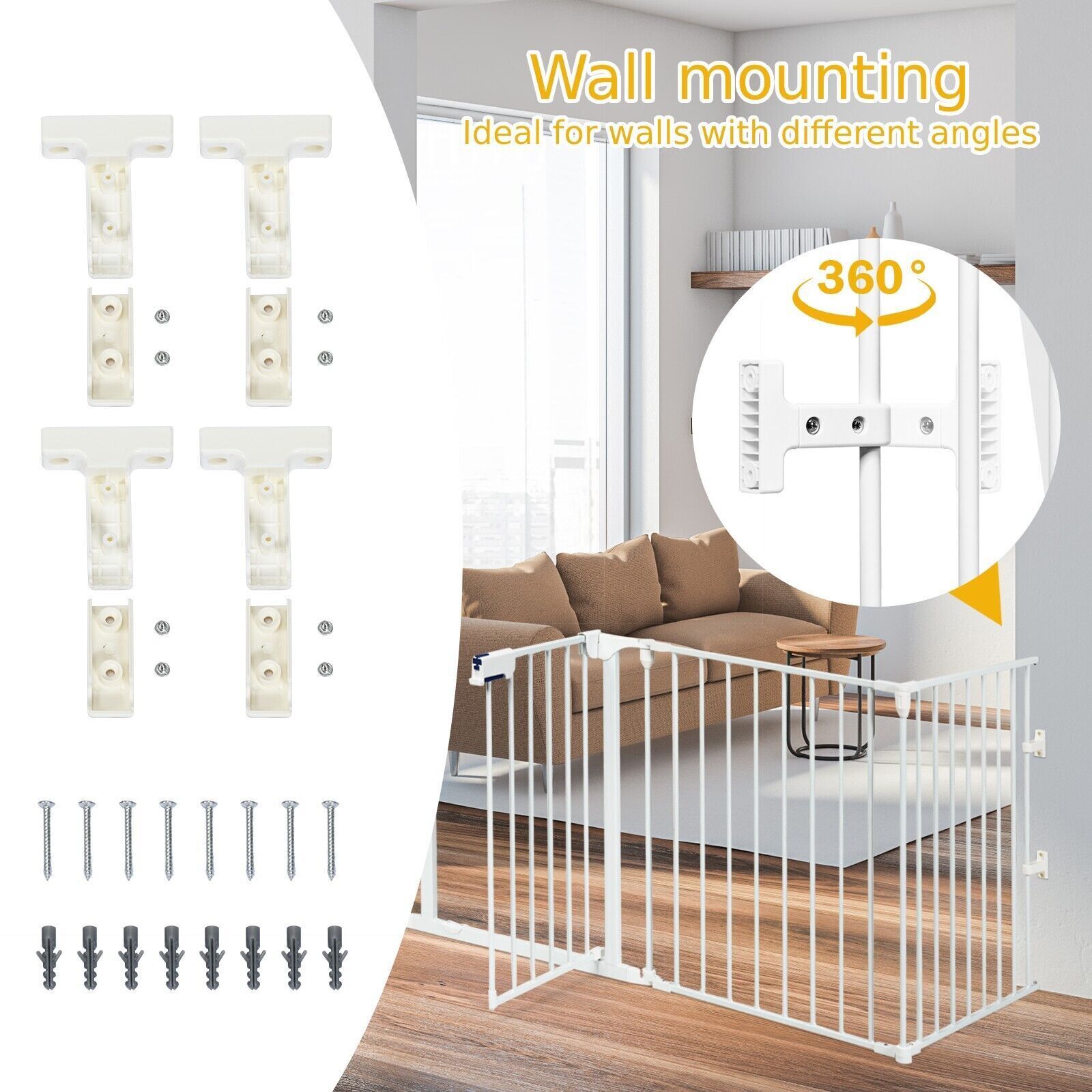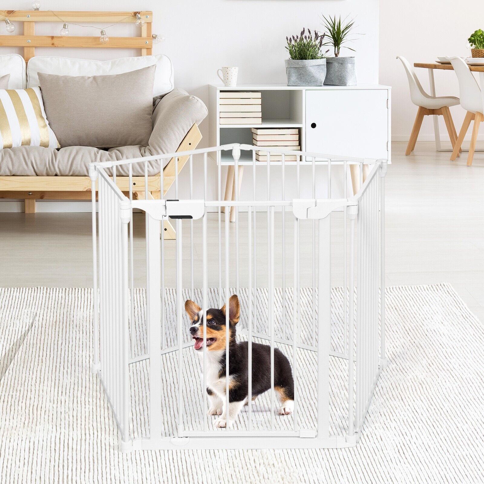 5-panel Metal Baby Pet Playpen Fireplace Fence Safety Fence Lockable Gate White