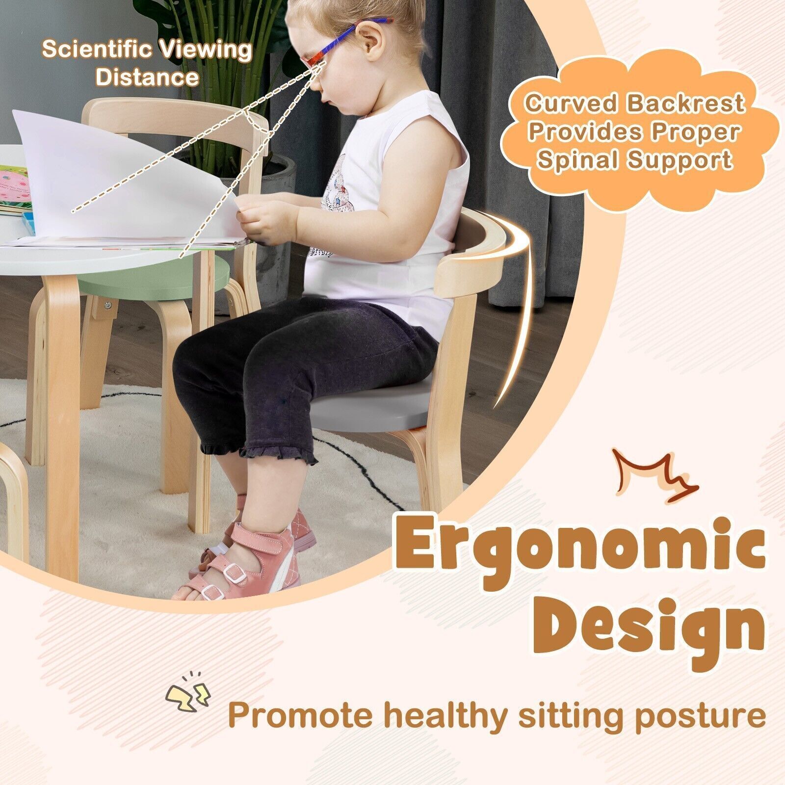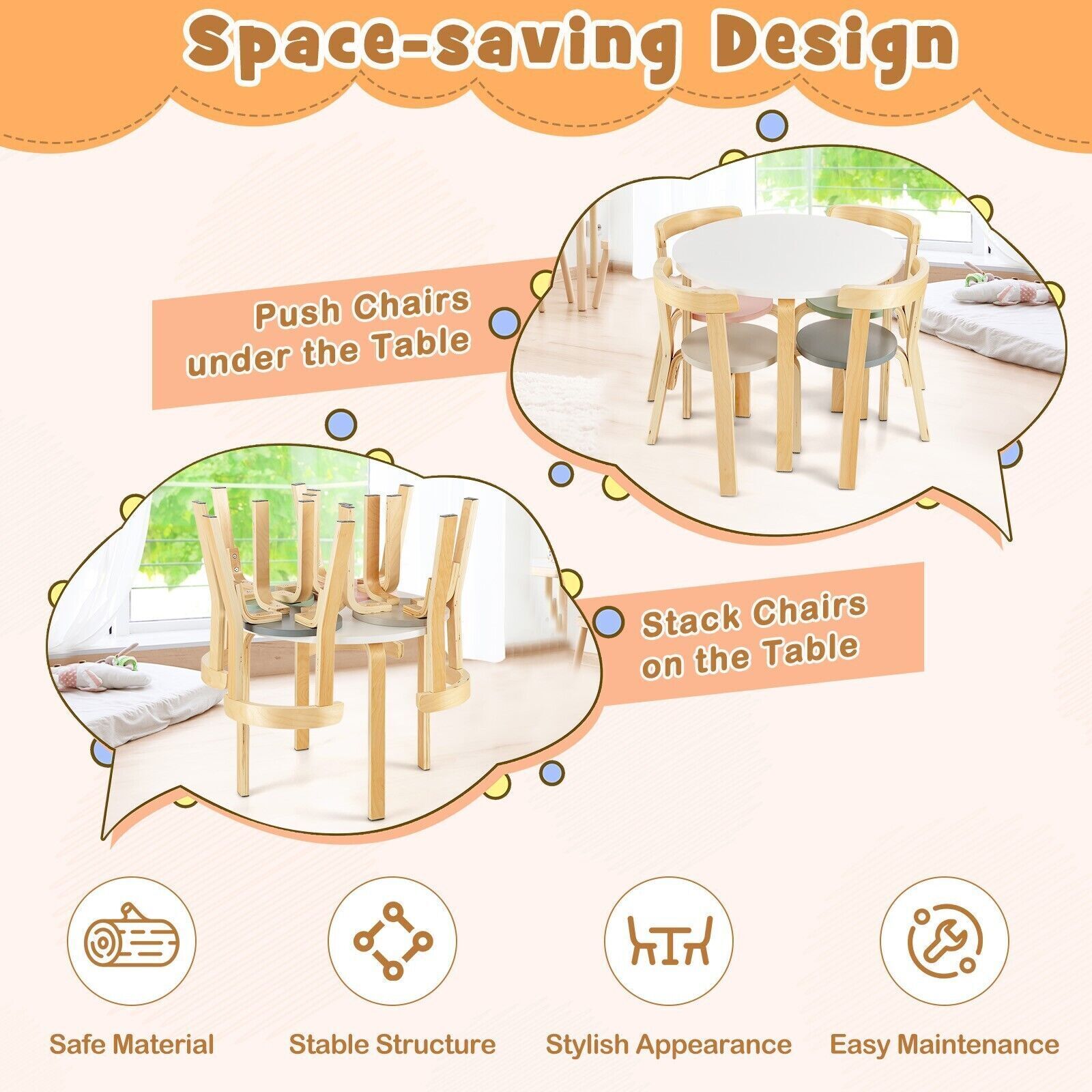 5 Pcs Kids Play Table and Chair Set Children Wooden Activity Table-Beige