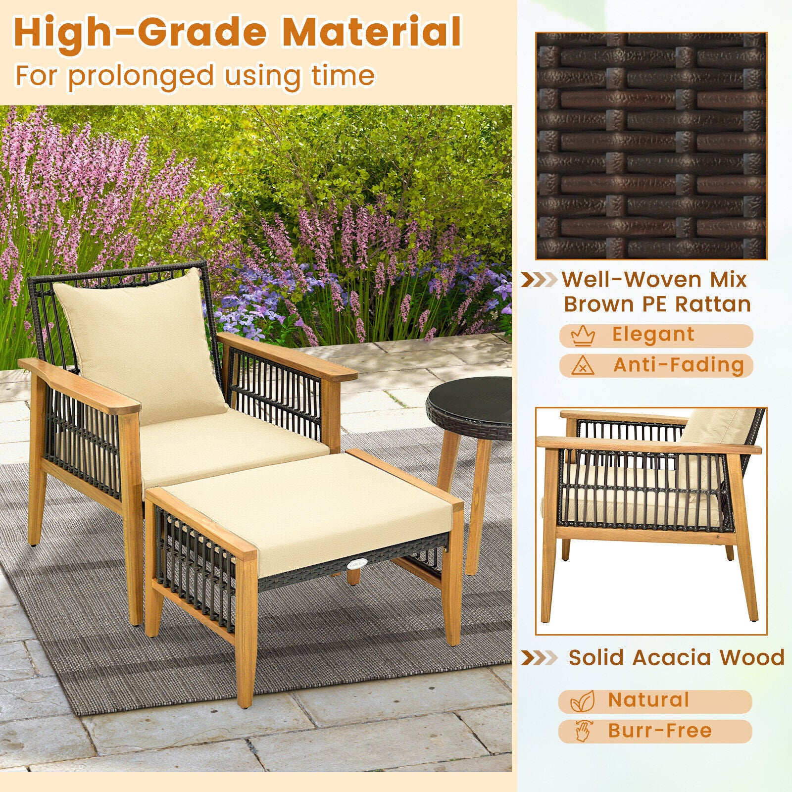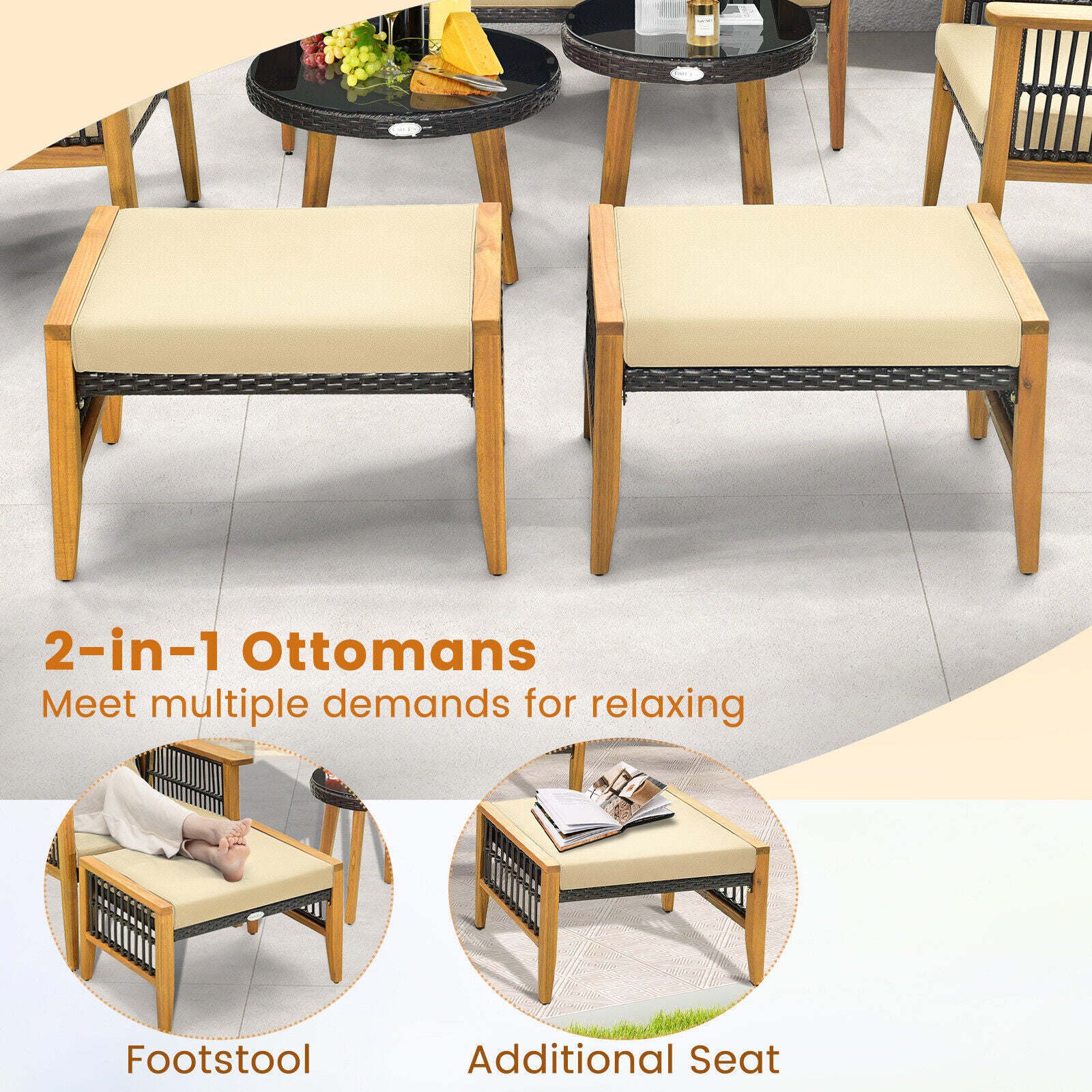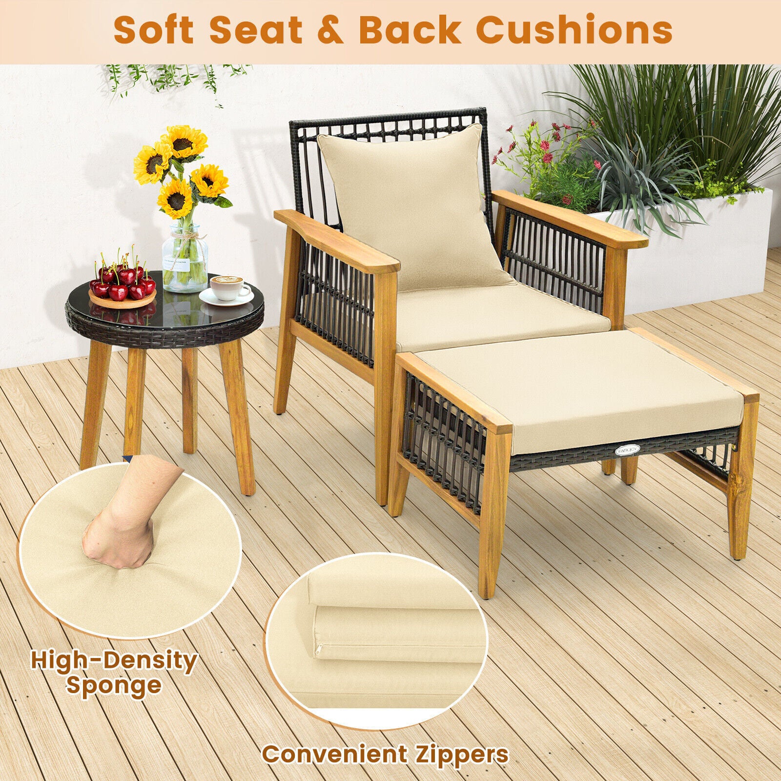 5 Pcs Outdoor Rattan Conversation Set Patio Furniture Set Wicker Woven Chair Set