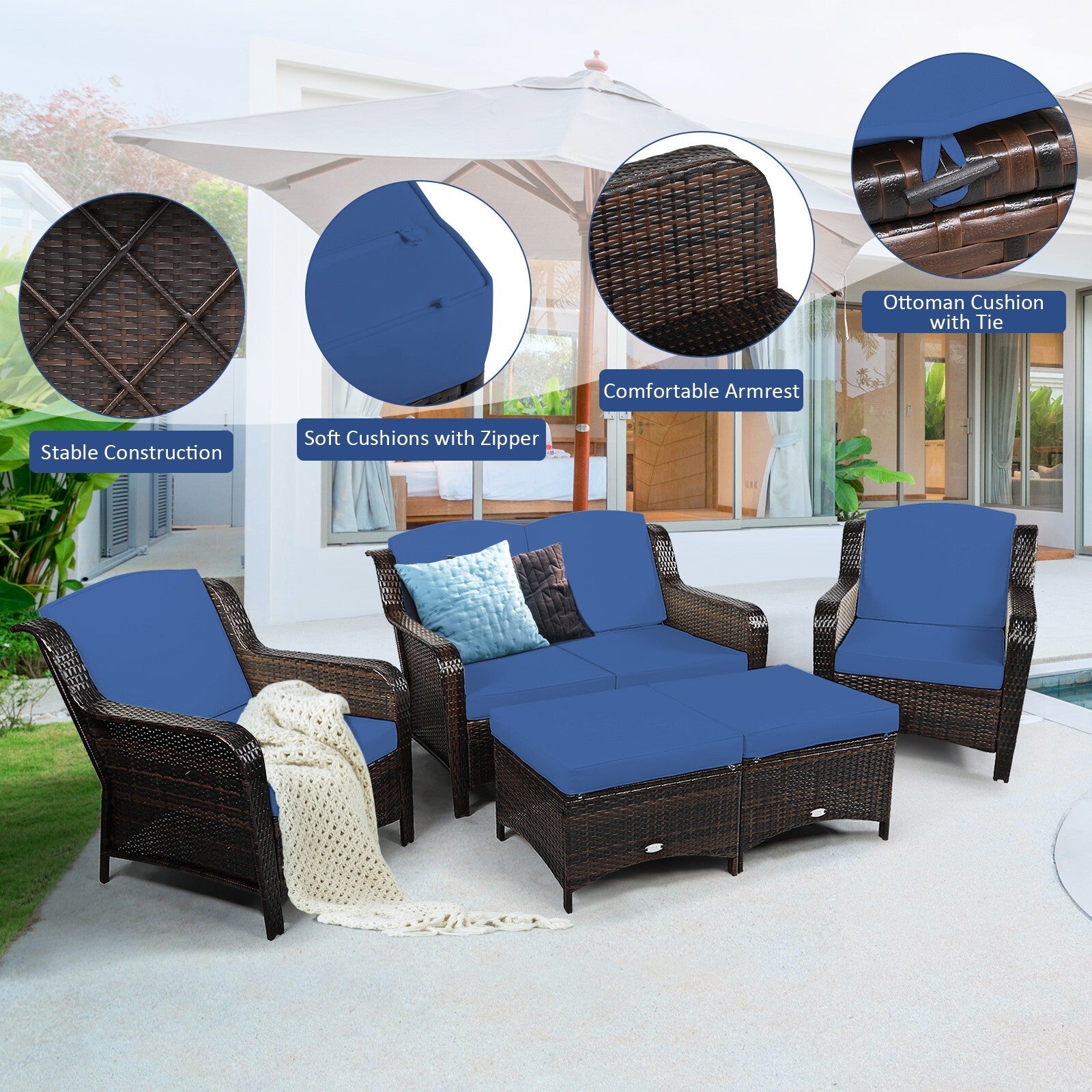 5 PCS Patio Furniture Set Outdoor Rattan Conversation Sofa Set Removable Cushion