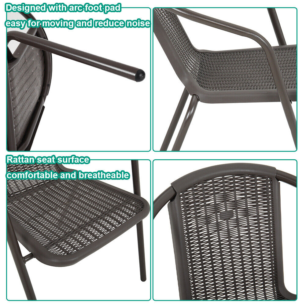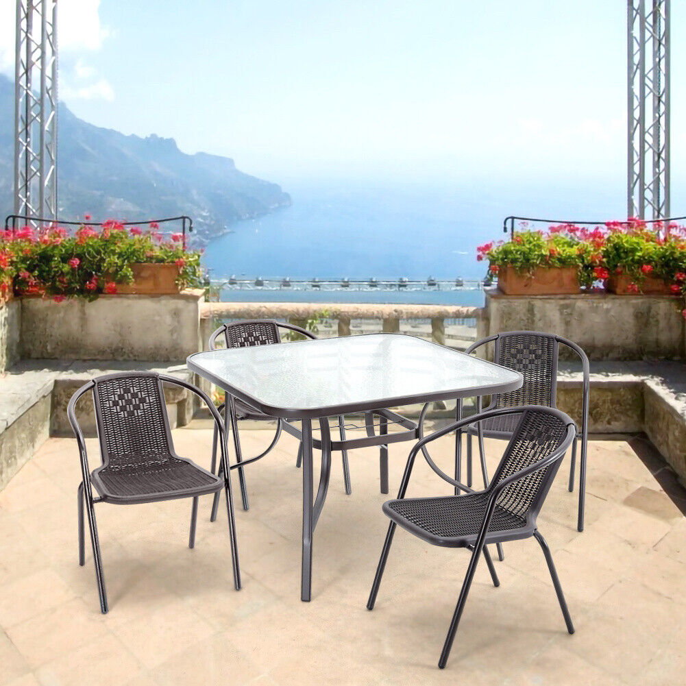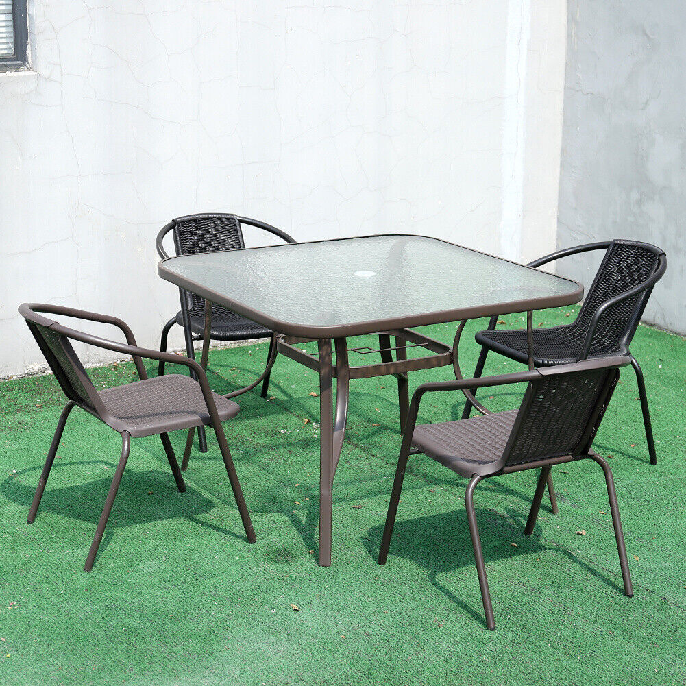 5-Piece Brown Rattan Bistro Set Table & Chairs Patio Outdoor Garden Furniture