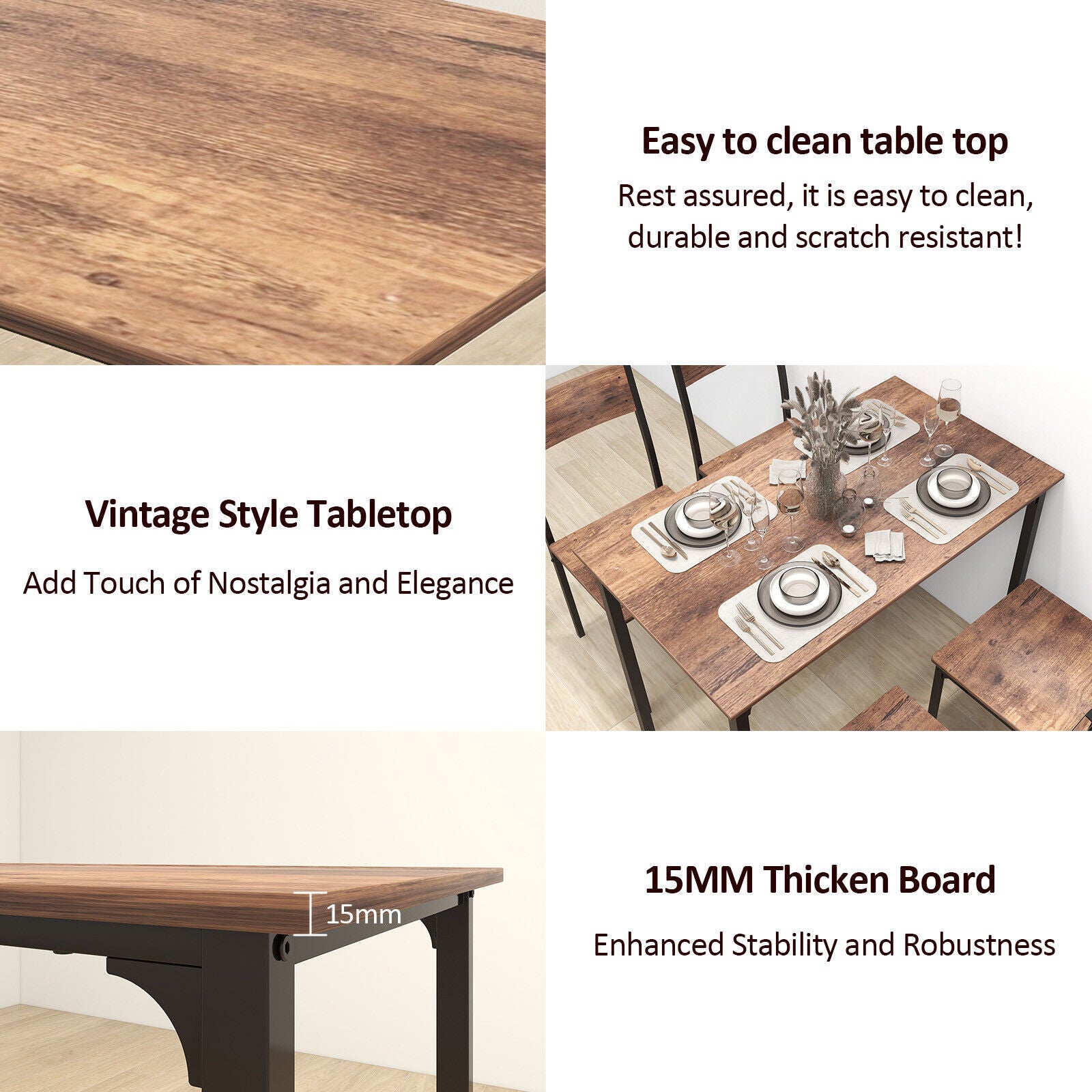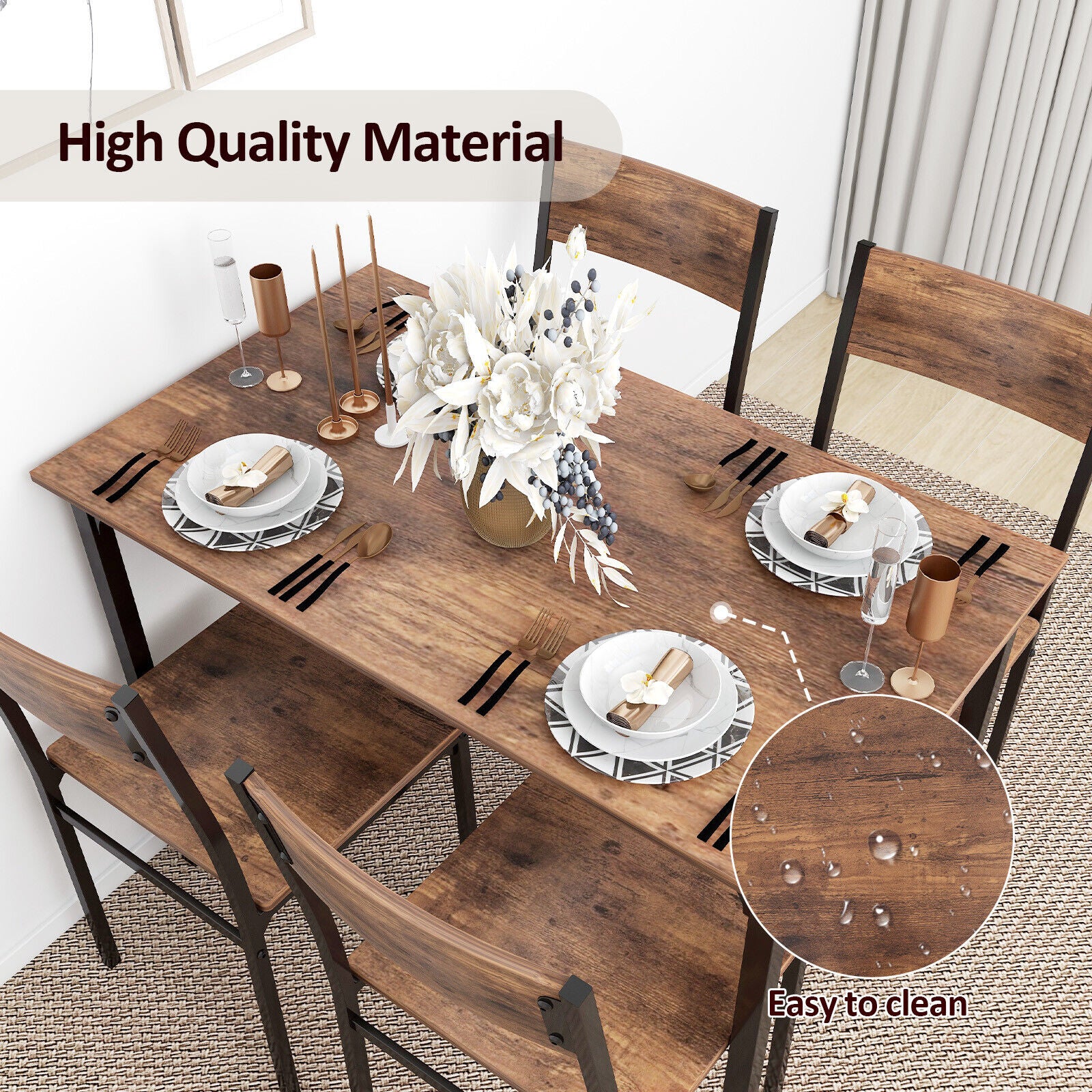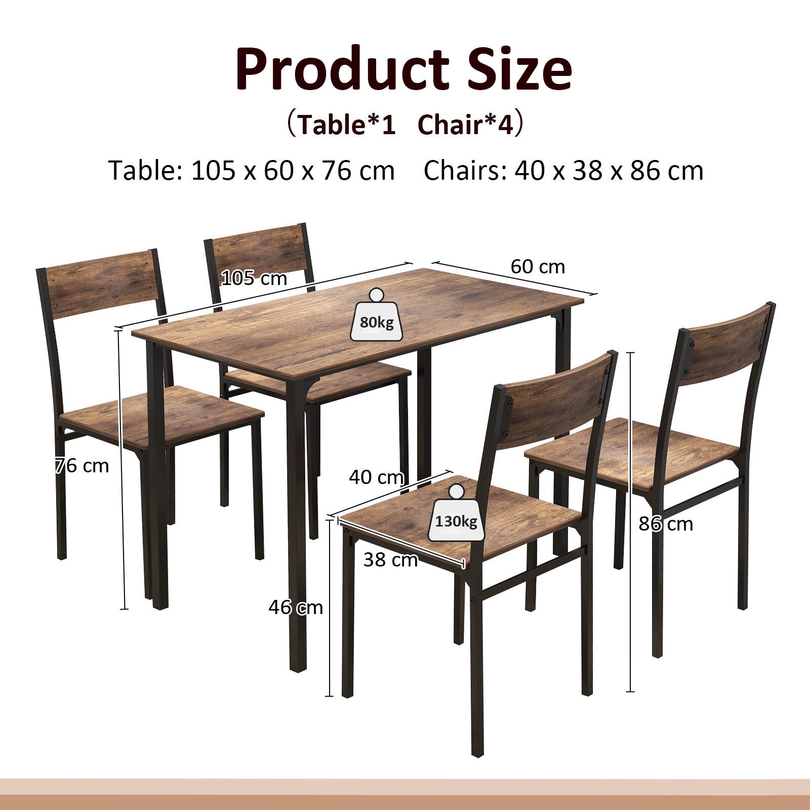 5 Piece Dining Table and Chairs Set Metal Wood Compact Set Table+4 Chairs Brown