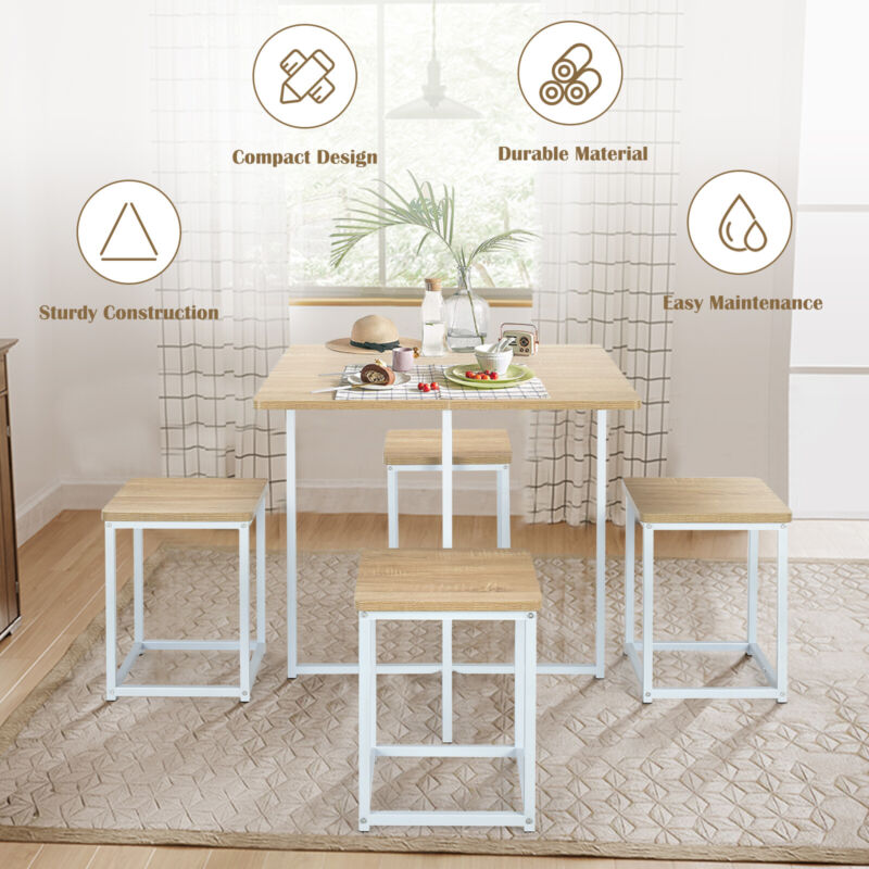 5-Piece Dining Table & Chair Set Bar Pub Table and Four Stool Set w/ MDF Table