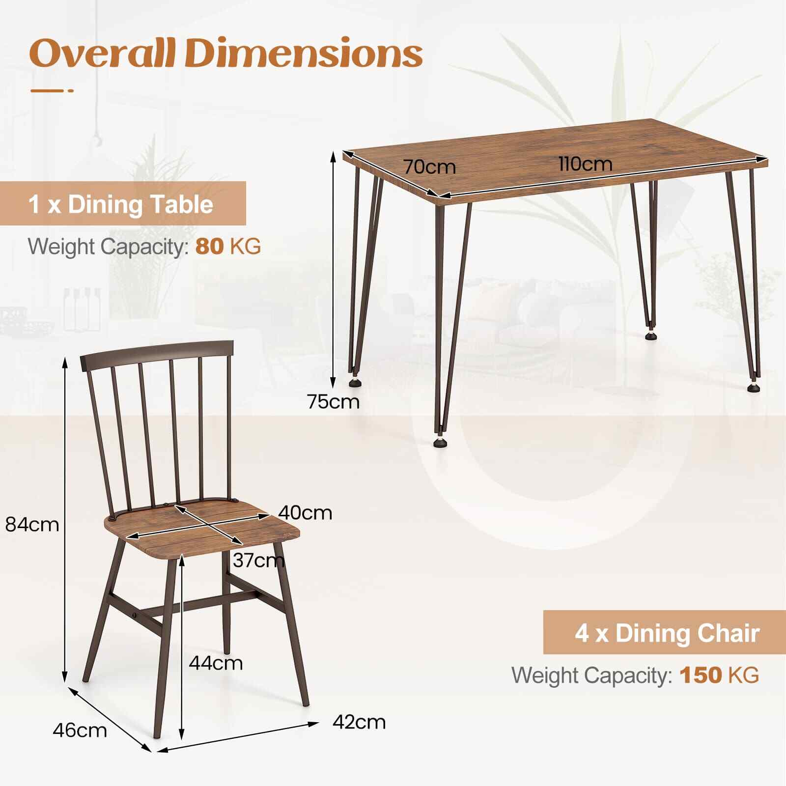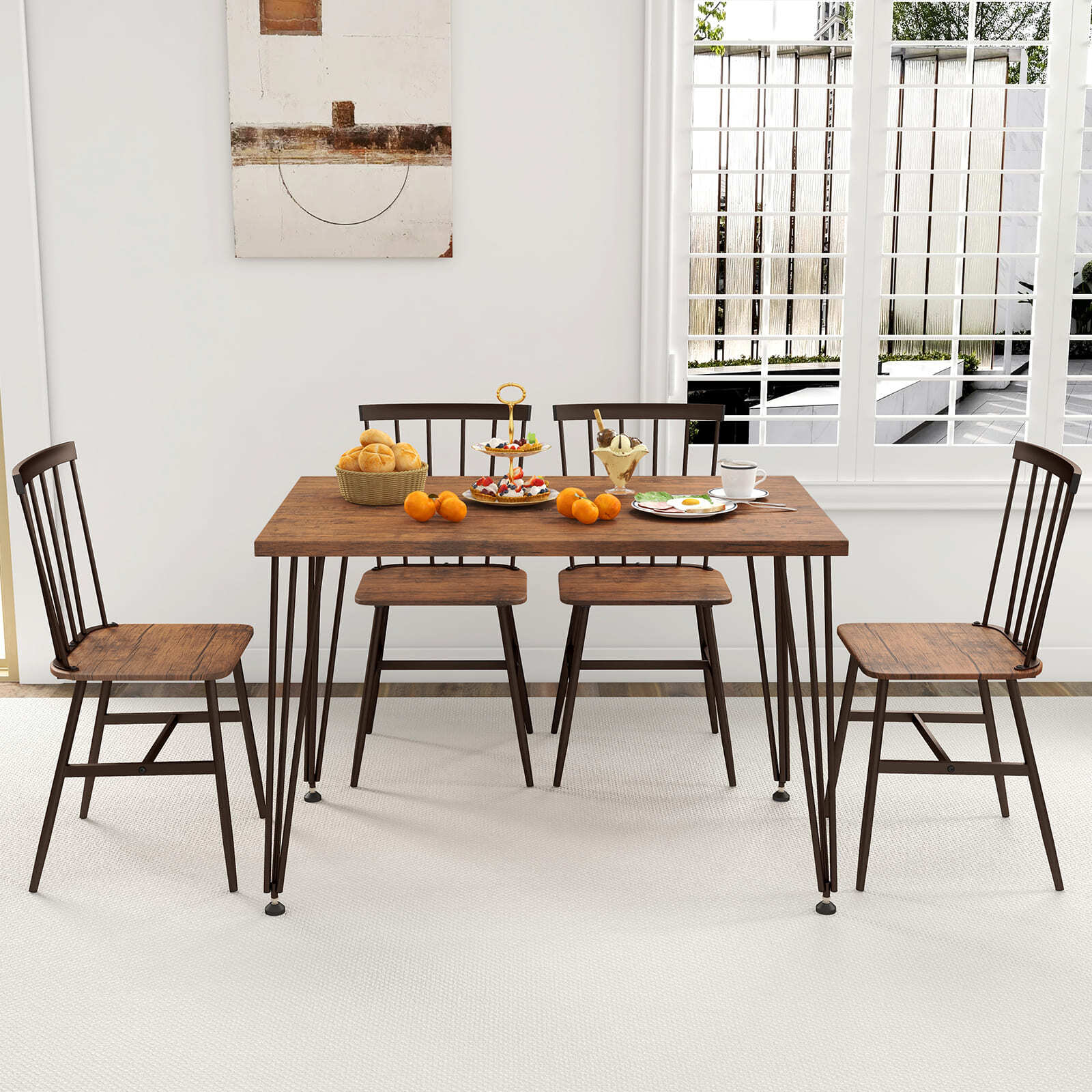 5-Piece Dining Table Set for Kitchen Table & 4 Chairs w/ Metal Frame Walnut