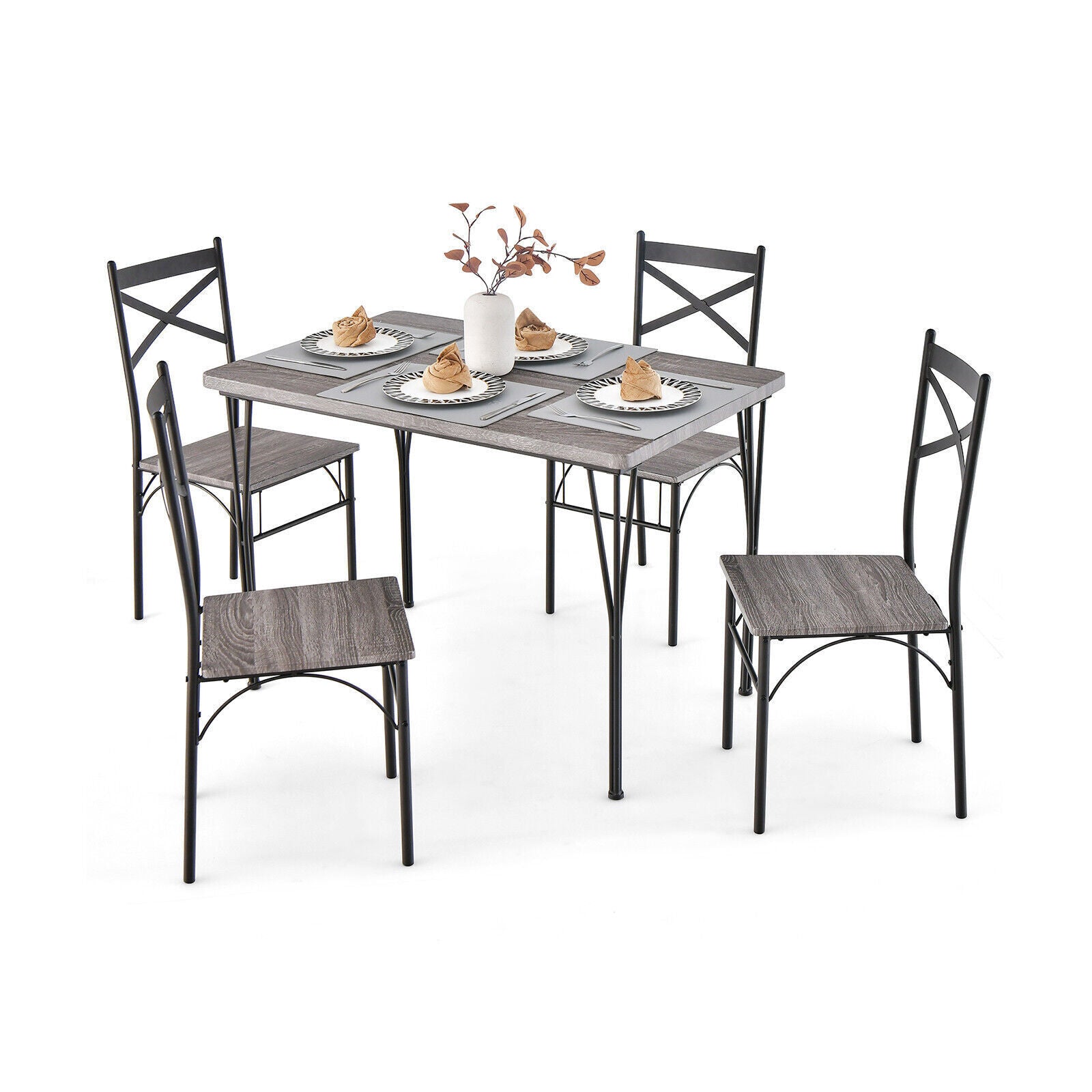 5-Piece Dining Table Set Modern Kitchen Room Table and Chairs Set w/Metal Frame
