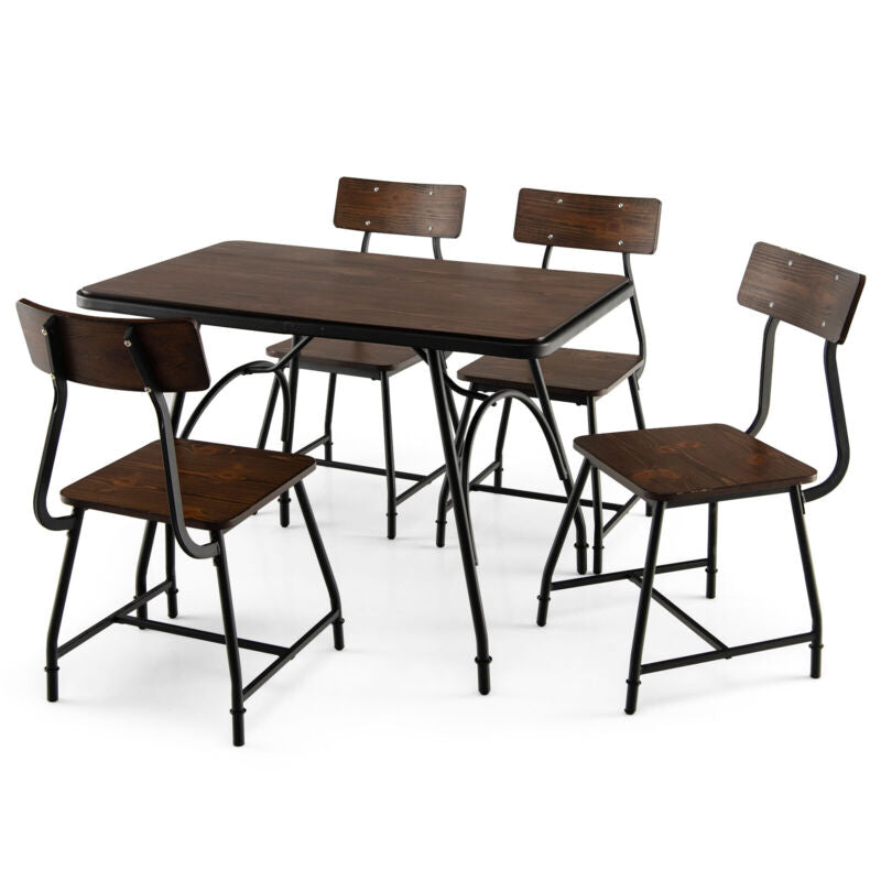 5 Piece Dining Table Set Rectangular Kitchen Table & 4 Chairs for 4 Person Brown