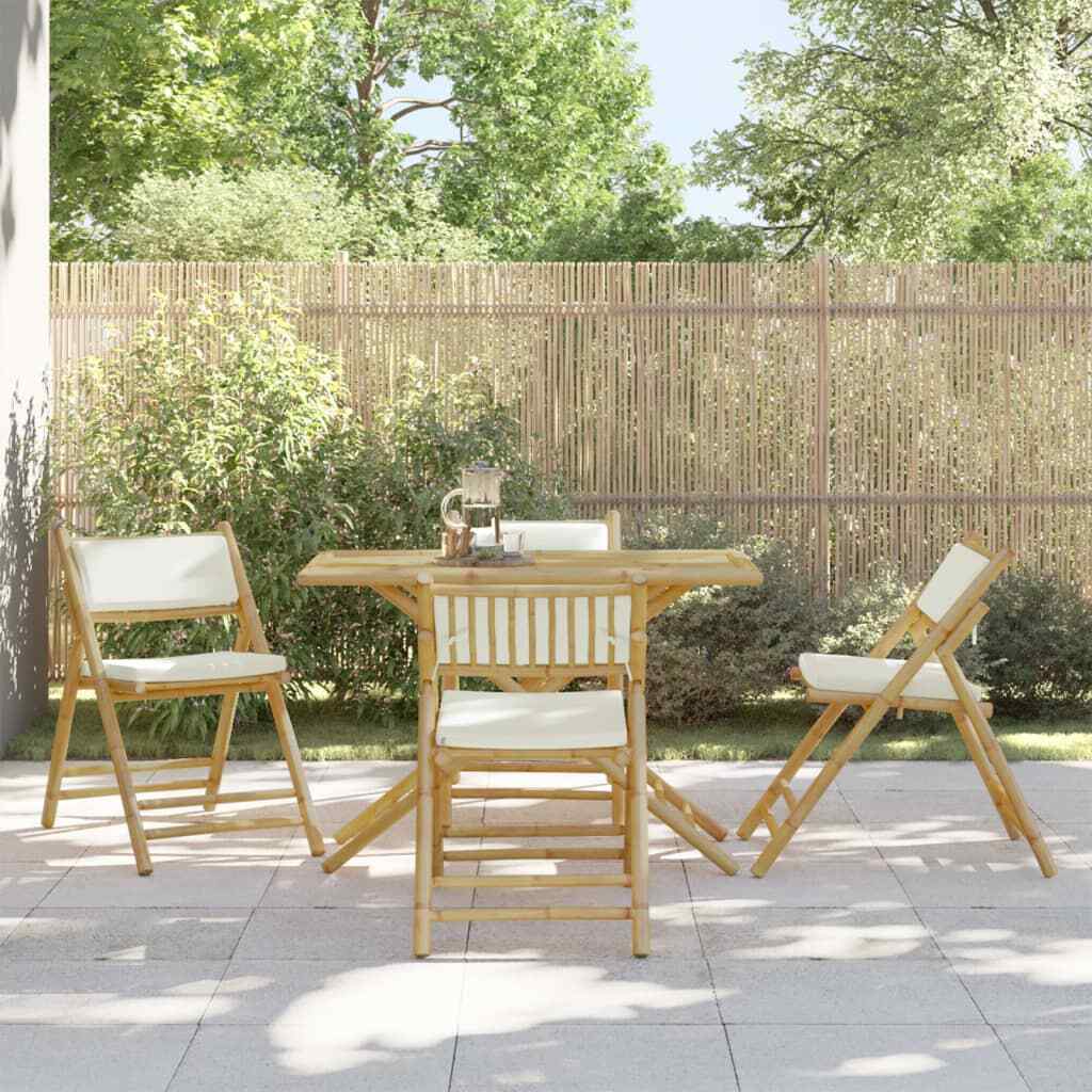 5 Piece Folding Bistro set with White Cushions Bamboo W1R8