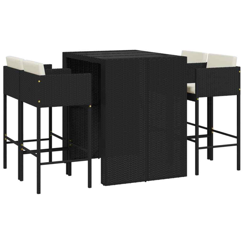 5 Piece Garden Bar Set with Cushions Black Poly Rattan vidaXL