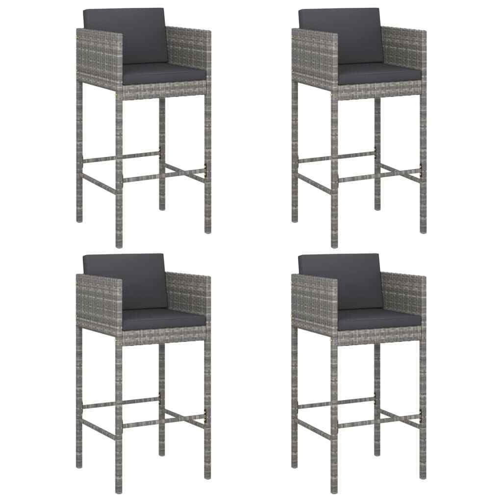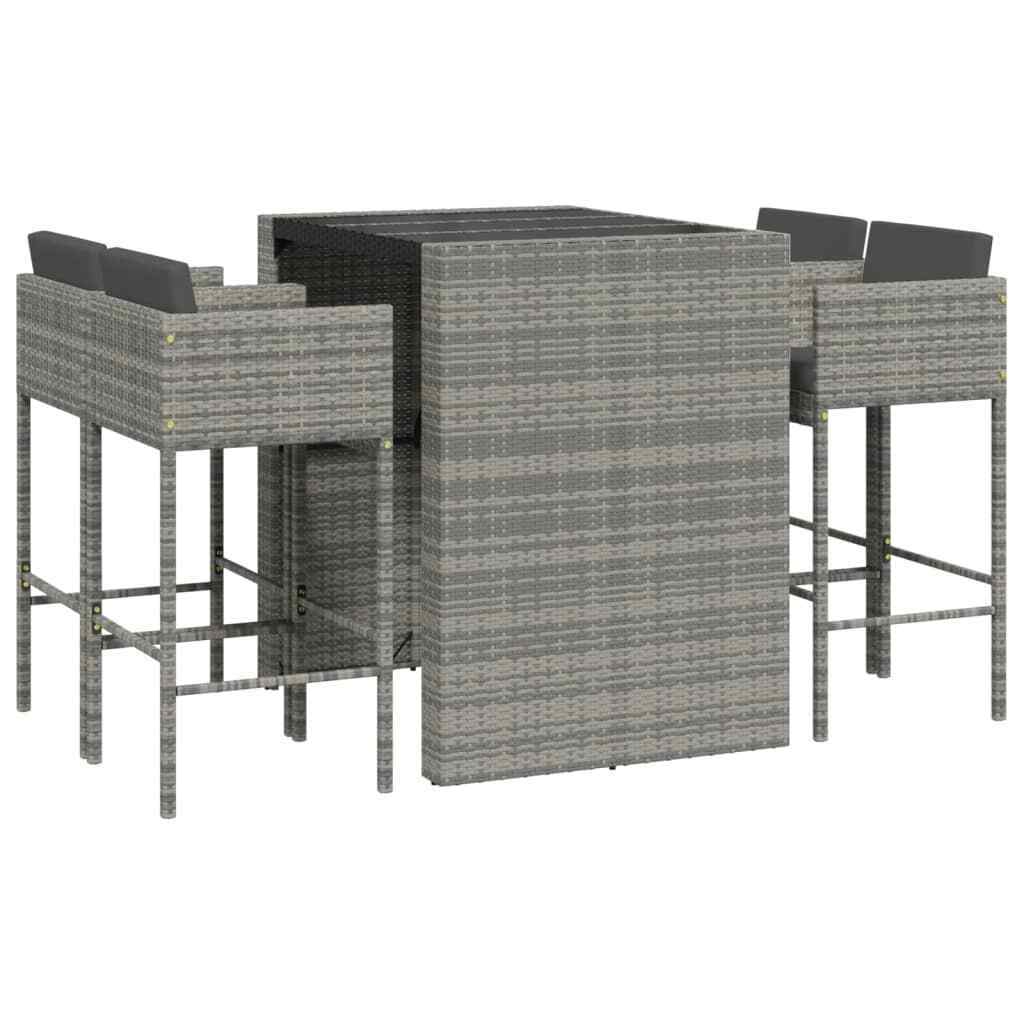 5 Piece Garden Bar Set with Cushions Grey Poly Rattan
