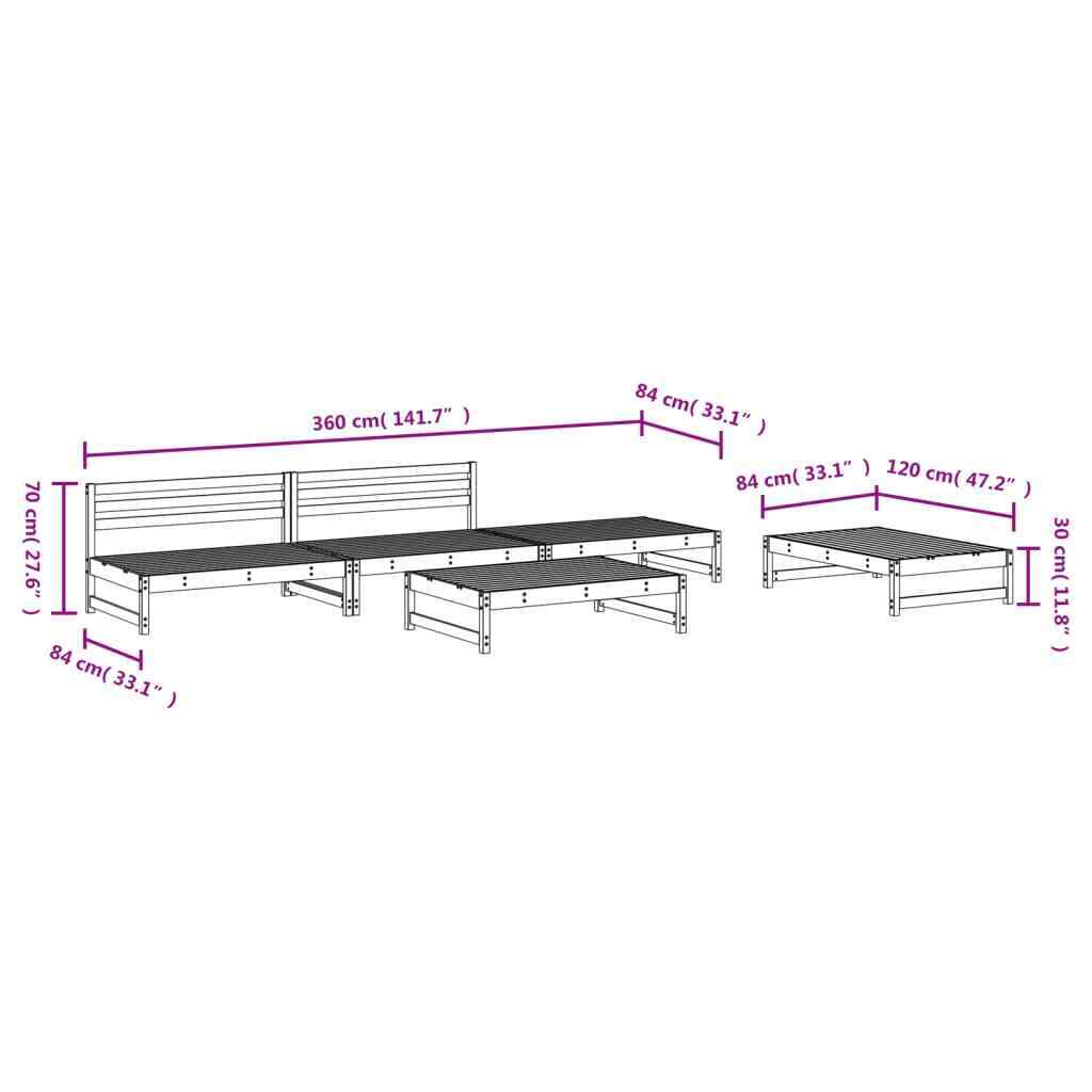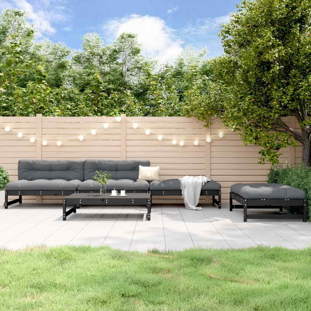 5 Piece Garden Lounge Set Black Solid Wood Pine