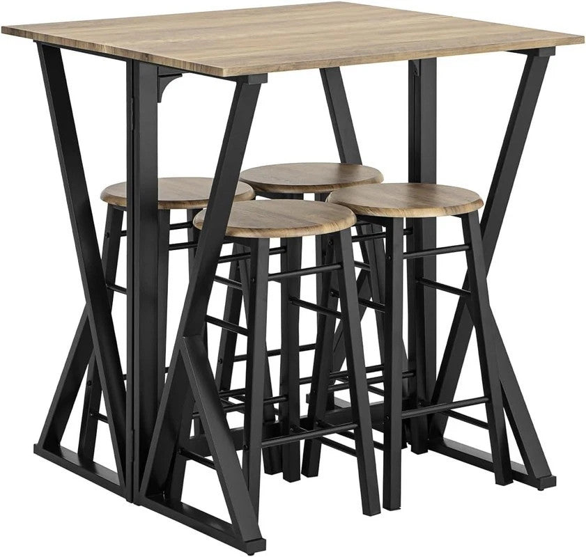 5-Piece Industrial Breakfast Bar Table Set, Folding Dining Table with 4 Stools