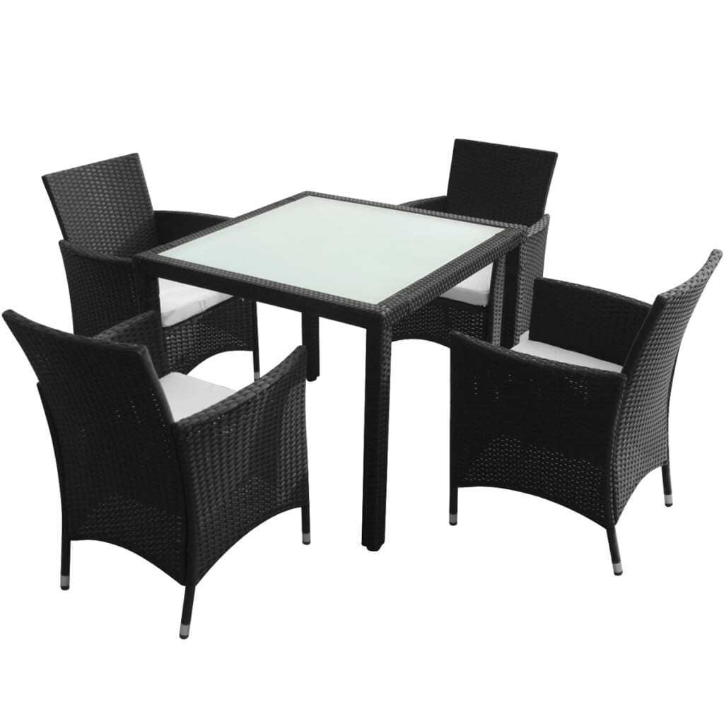 5 Piece Outdoor Dining Set with Cushions Poly Rattan Black