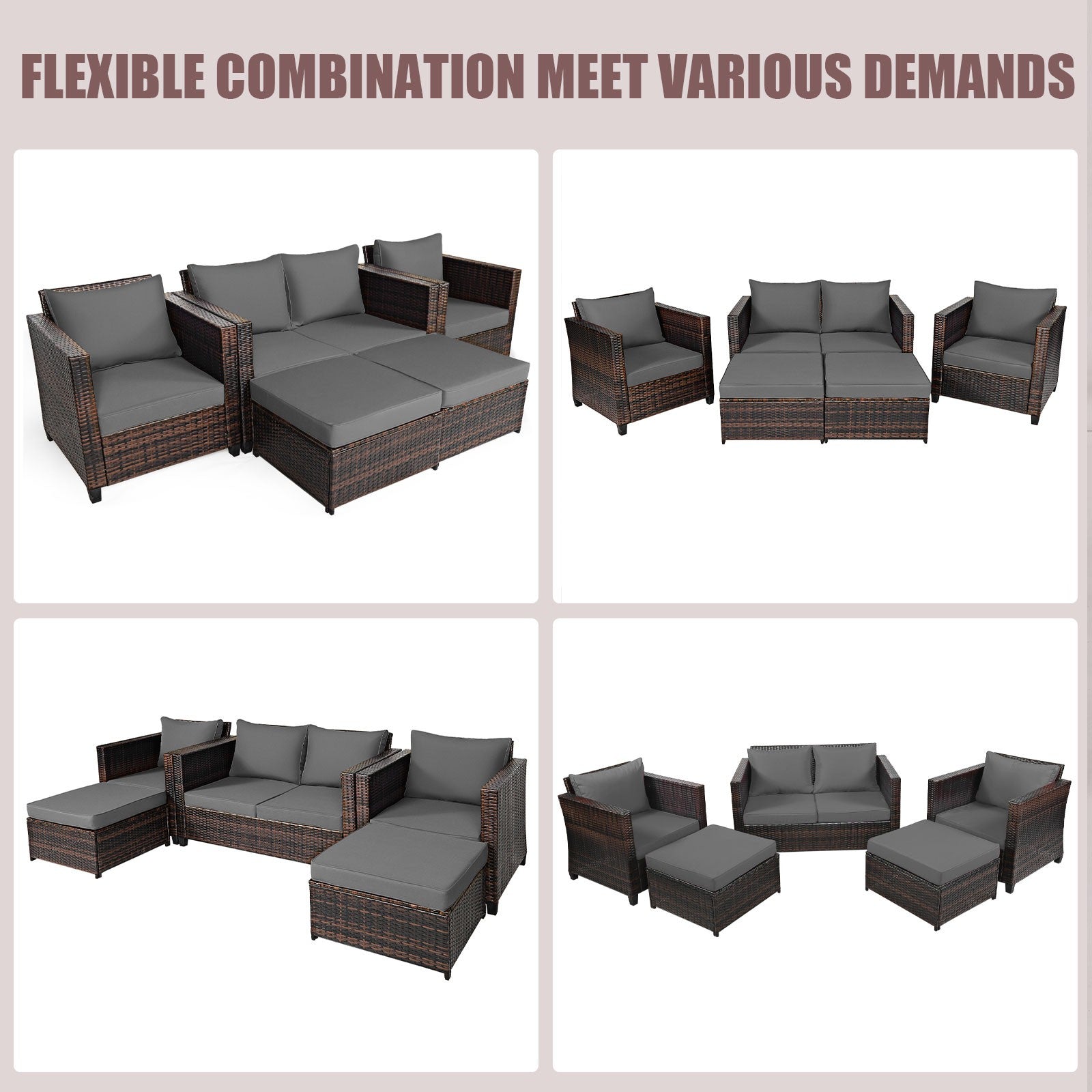 5-Piece Outdoor Patio Conversation Set Loveseat and 2 Ottoman