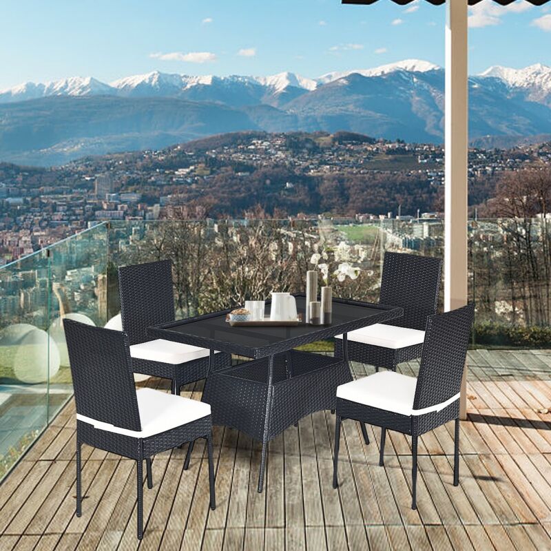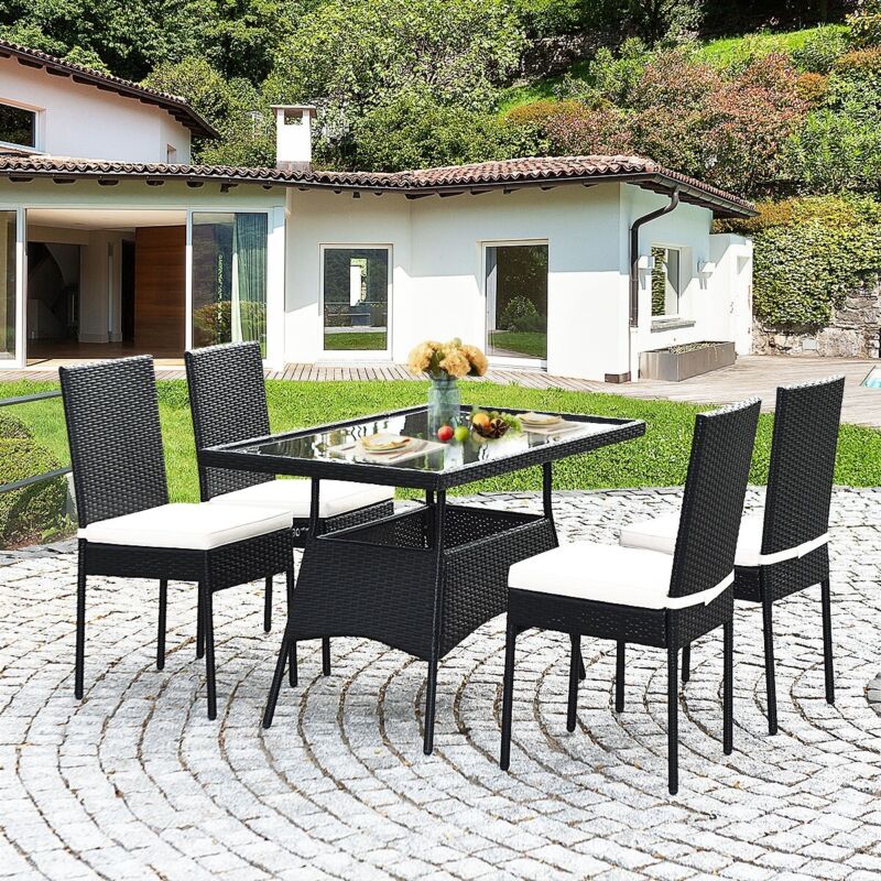 5-Piece Patio Rattan Dining Set Outdoor Dining Furniture w/ 1 Table &4 Chairs