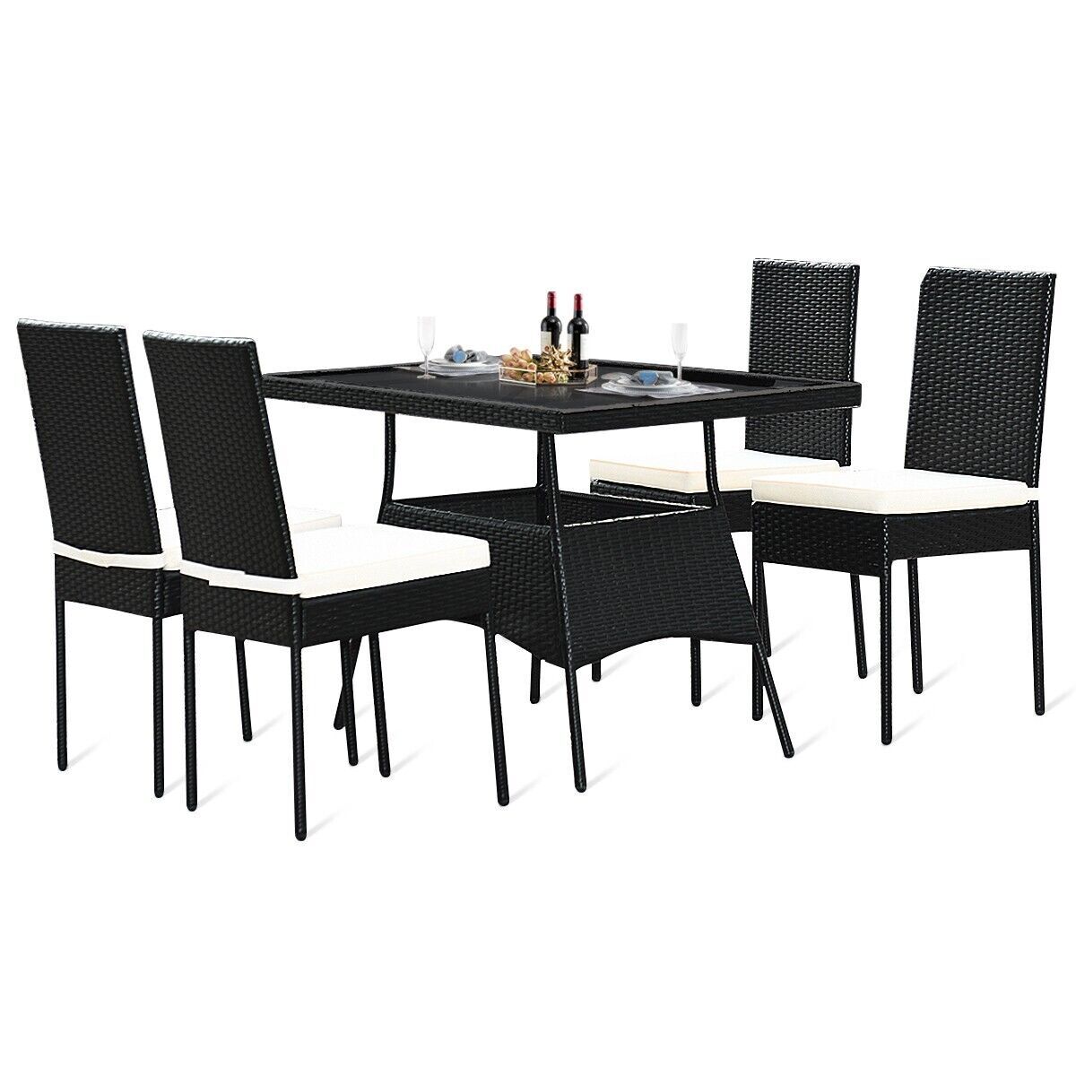5-Piece Patio Rattan Dining Set Outdoor Dining Furniture w/ 1 Table &4 Chairs