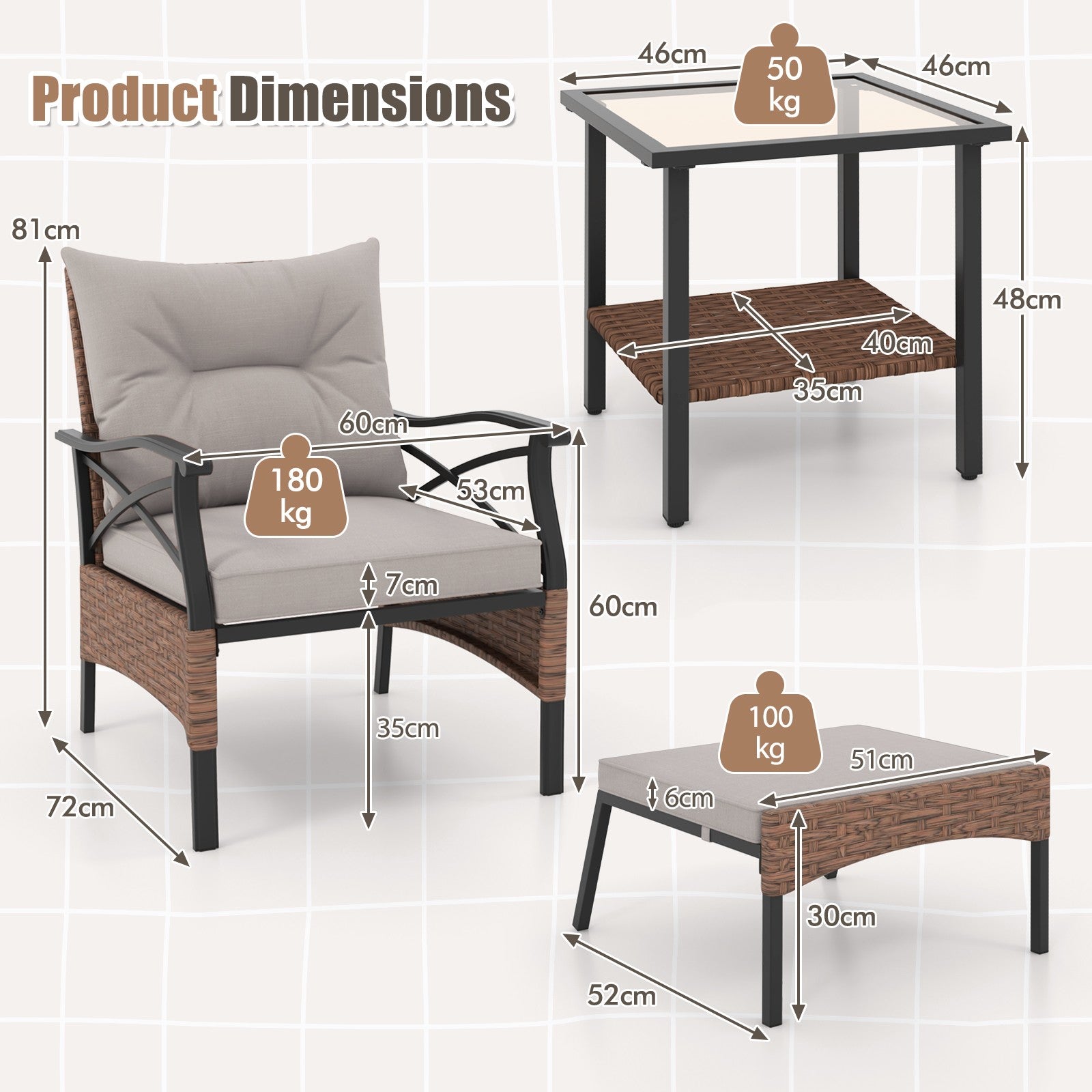 5 Pieces Wicker Patio Furniture Patio Conversation Bistro Set