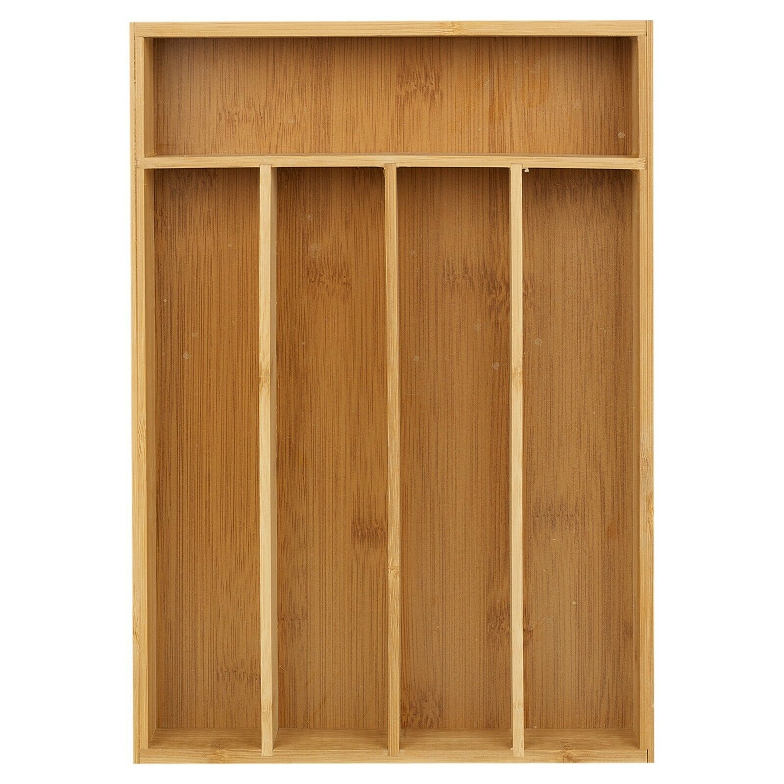 5 Section Bamboo Wooden Cutlery Tray Kitchen Drawer Utensil Organiser & Holder