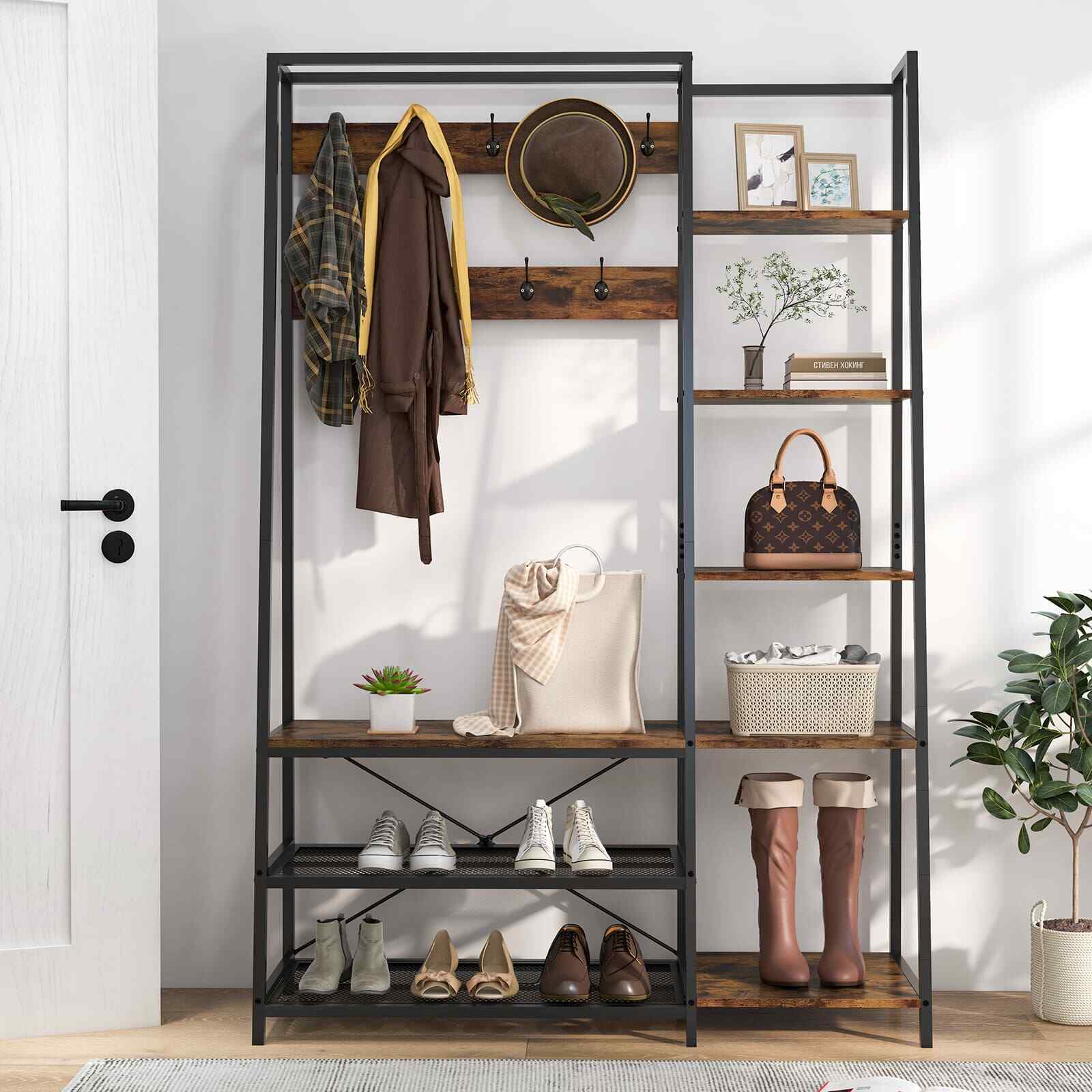 5 Side Shelves Hall Tree Entryway Bench With Coat Rack And Storage
