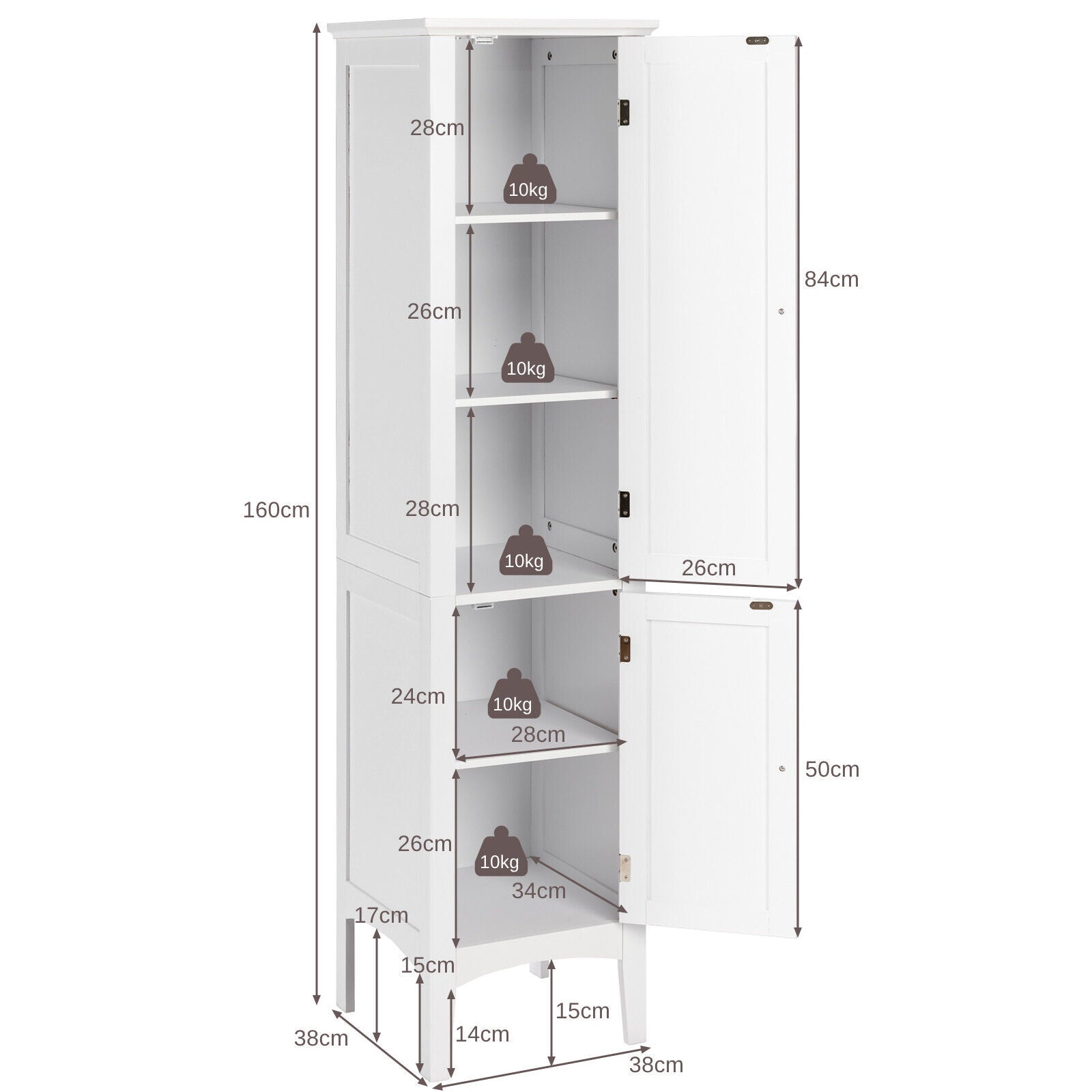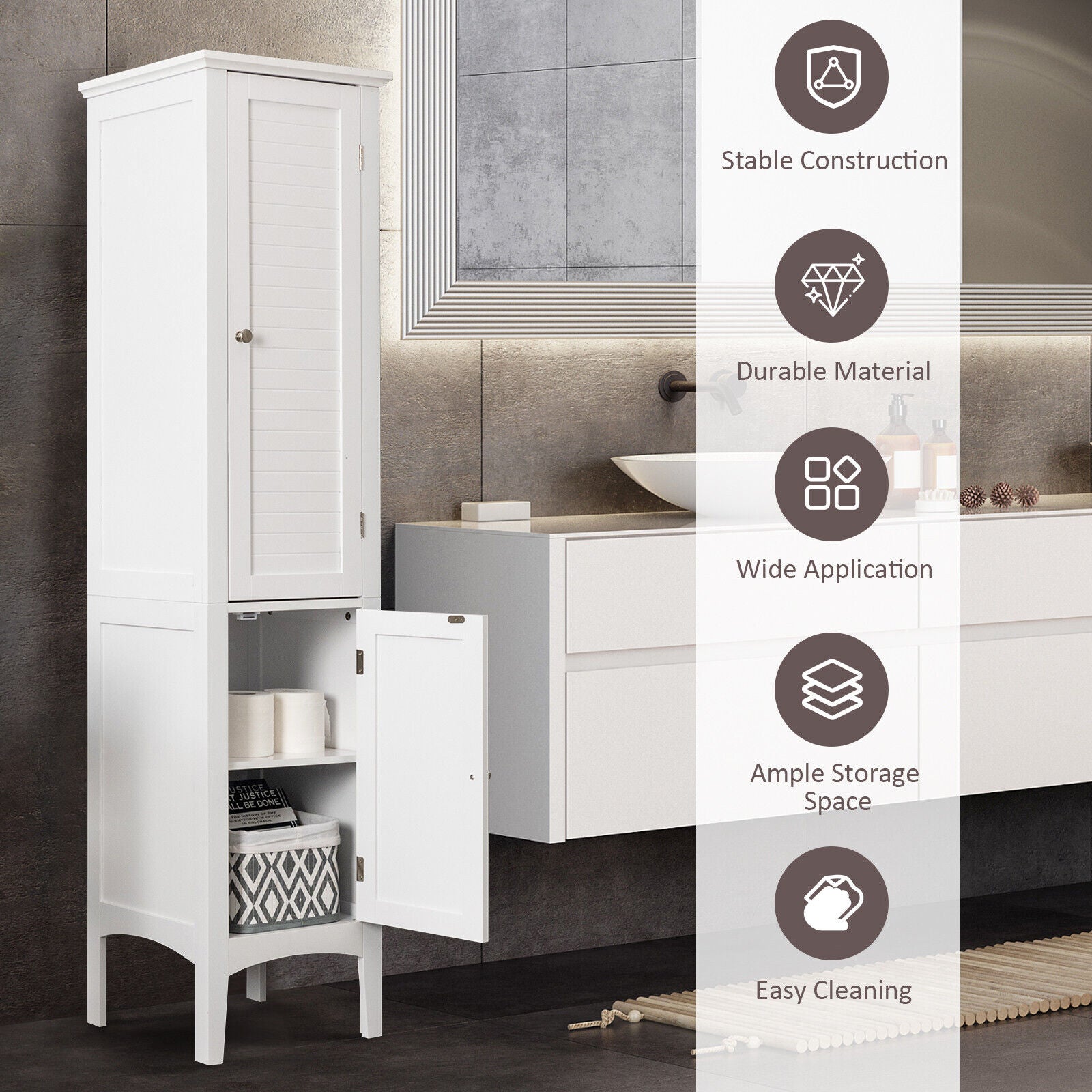 5-Tier Bathroom Floor Cabinet Tall Narrow Storage Cabinet Organizer w/Doors