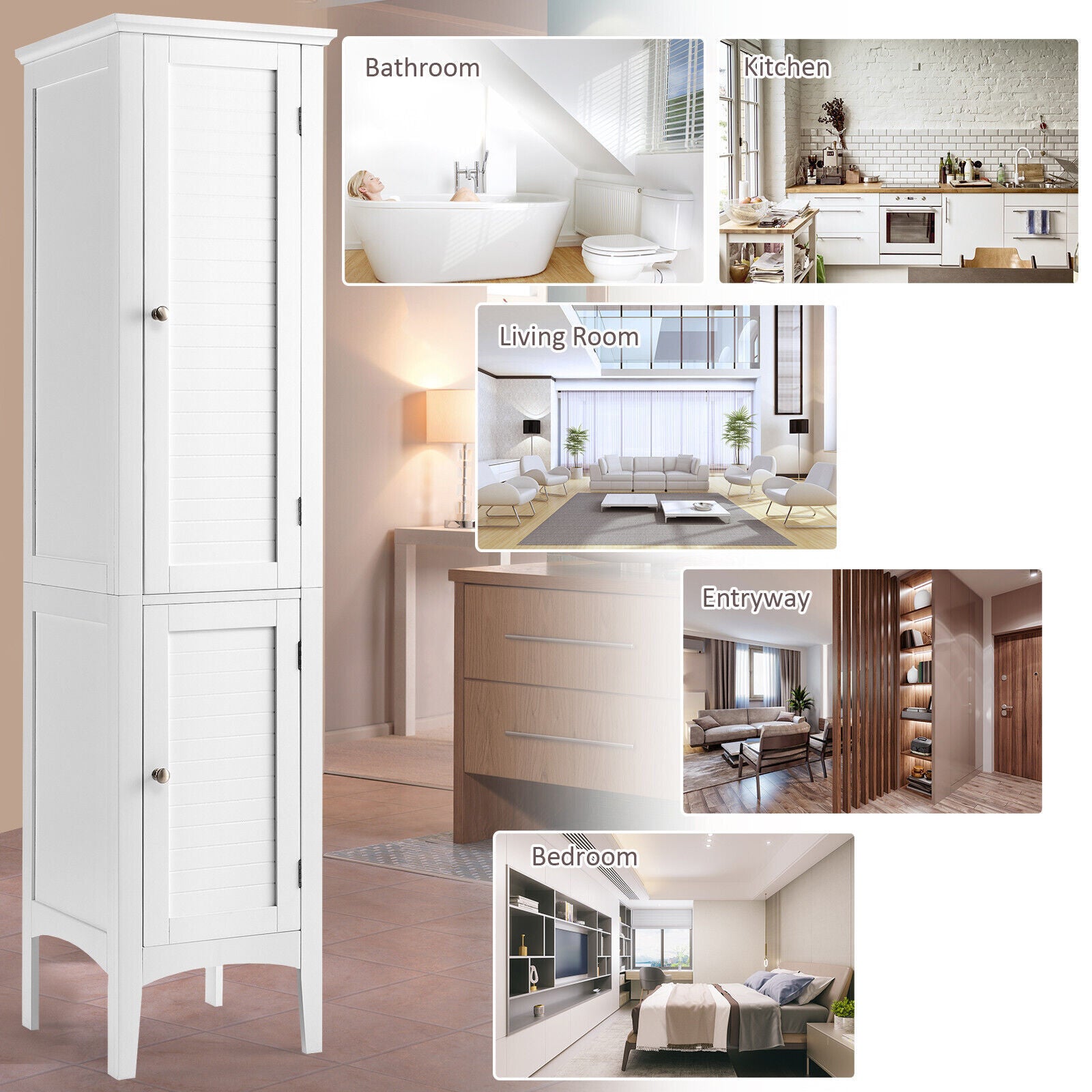 5-Tier Bathroom Floor Cabinet Tall Narrow Storage Cabinet Organizer w/Doors