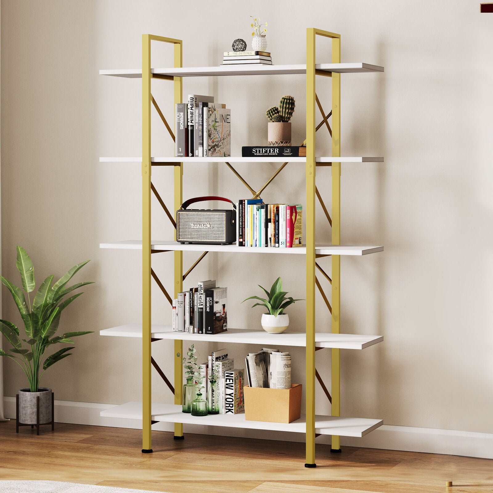5 Tier Book Shelves Bookcases Bookshelf Storage Shelving Unit Home Display Rack
