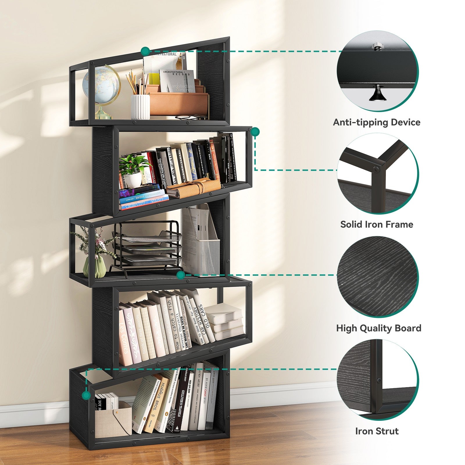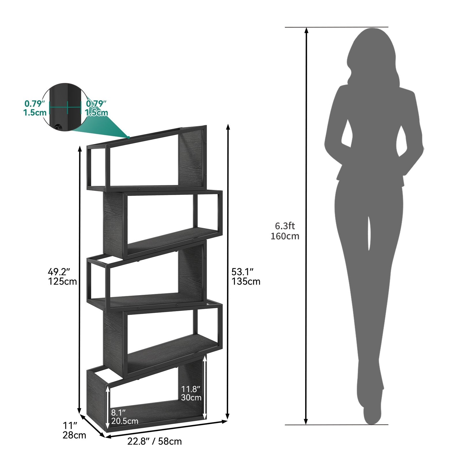 5 Tier Bookcase Bookshelf Shelving Unit Storage Rack for Living Room Bedroom