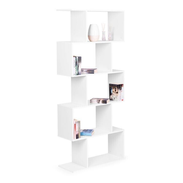 5-tier Bookcase Industrial S-Shaped Bookshelf Modern Storage Display Rack
