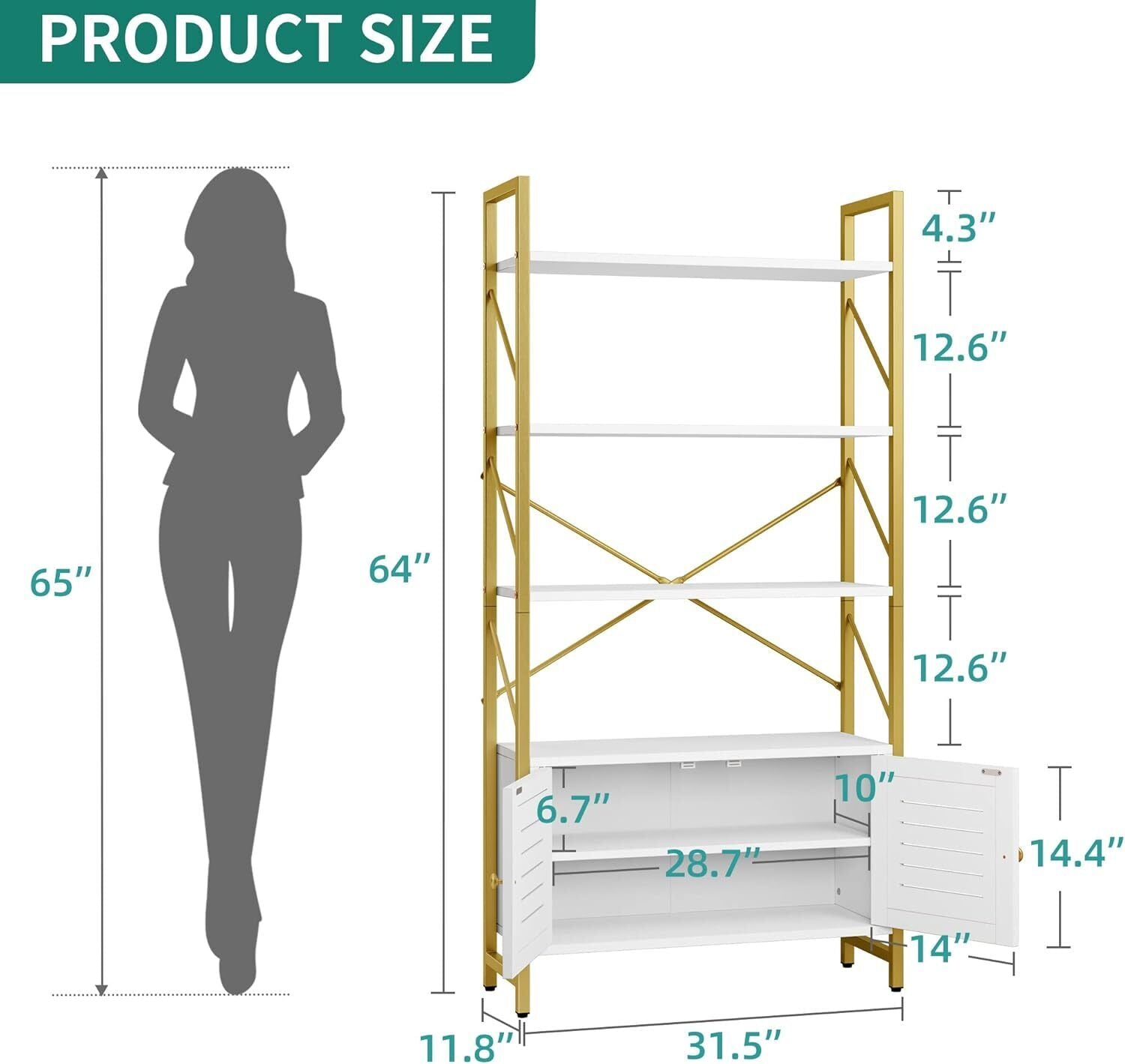 5 Tier Bookcase with Storage Cabinet Display Rack for Bedroom Living Room Office