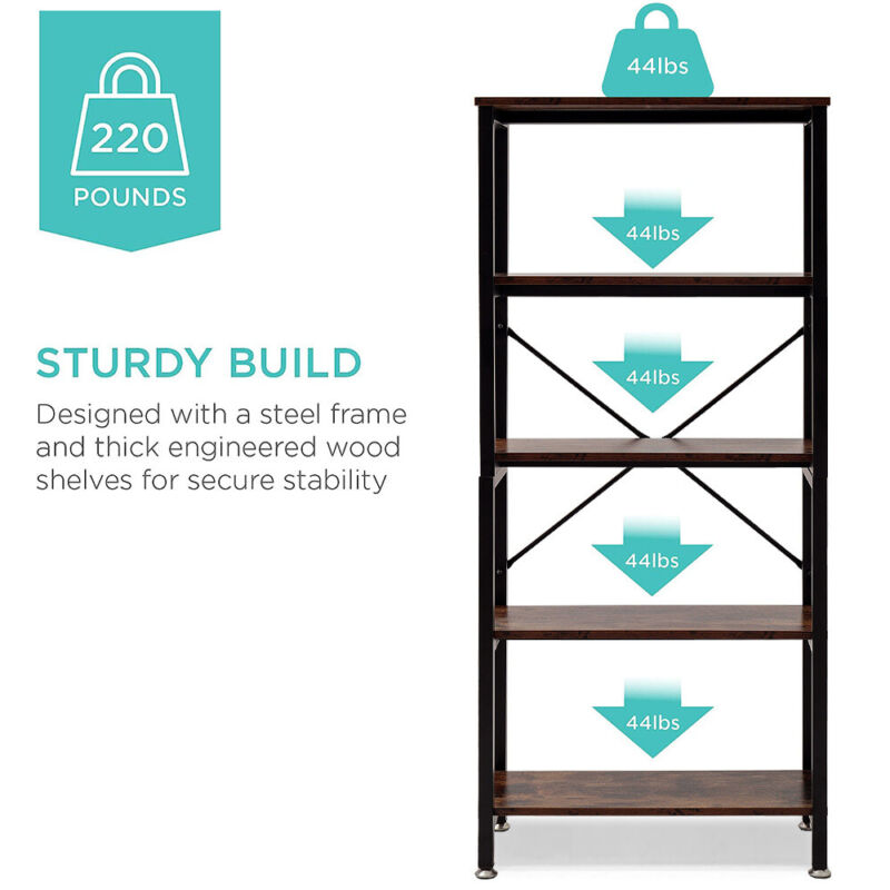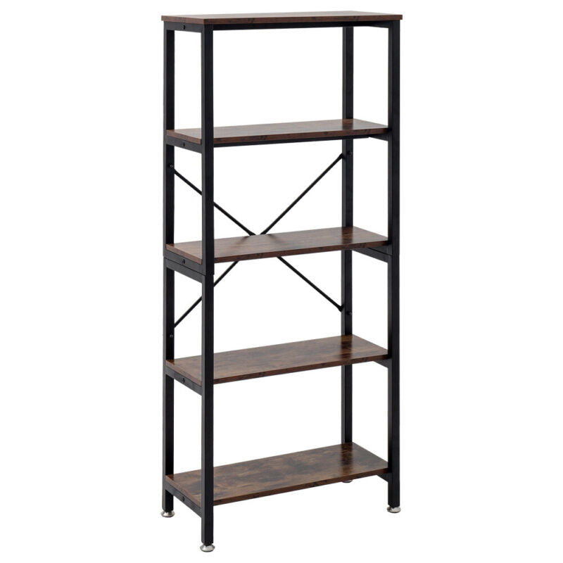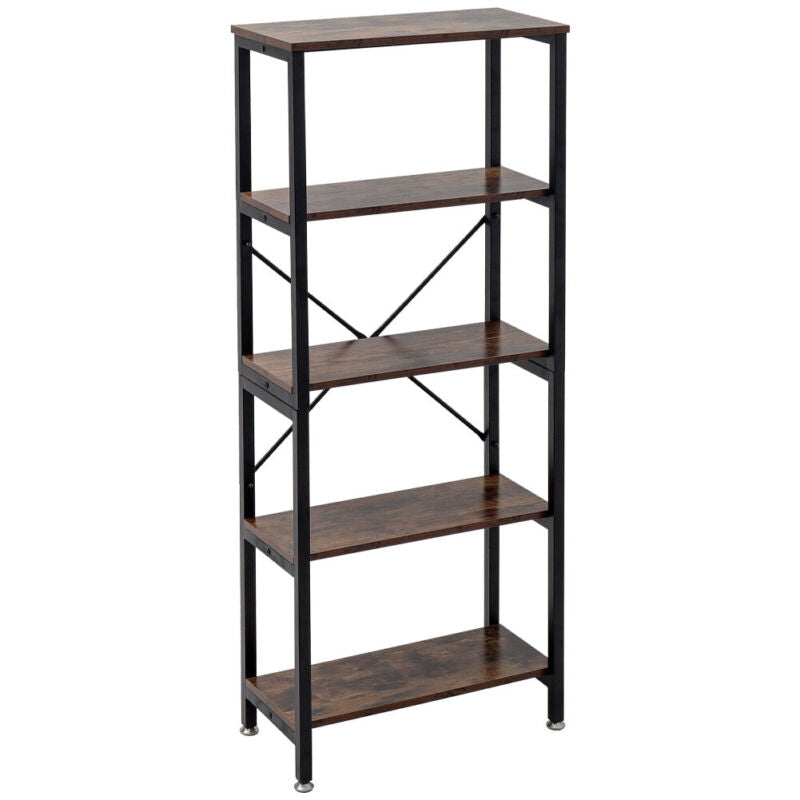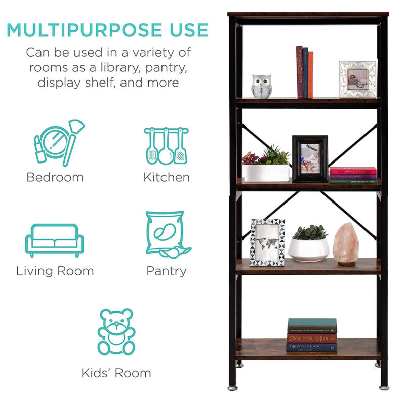 5 Tier Bookshelf Bookcase Industrial Wood Metal Storage Display Shelving Rack