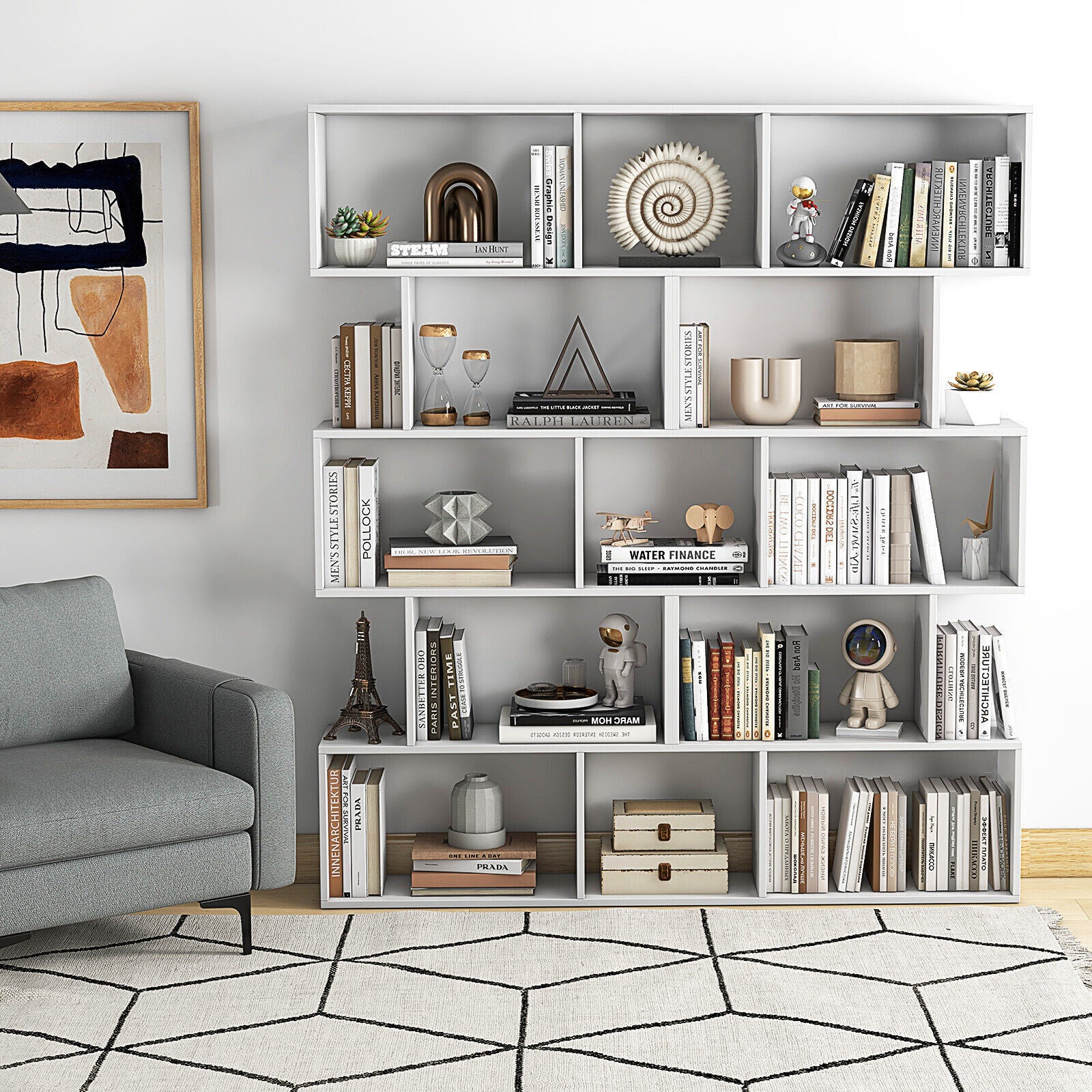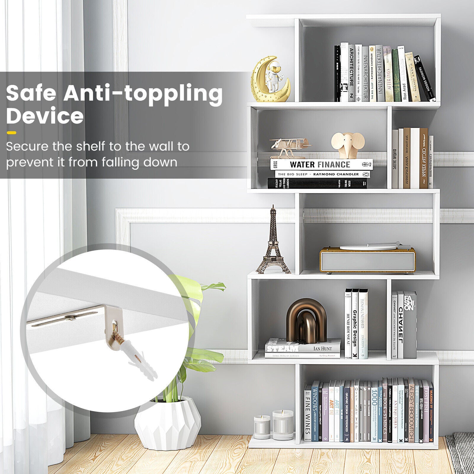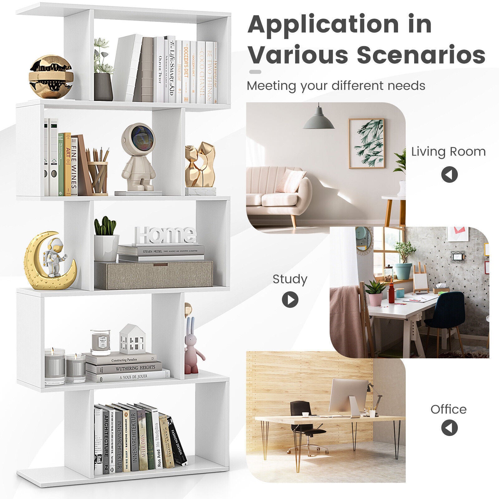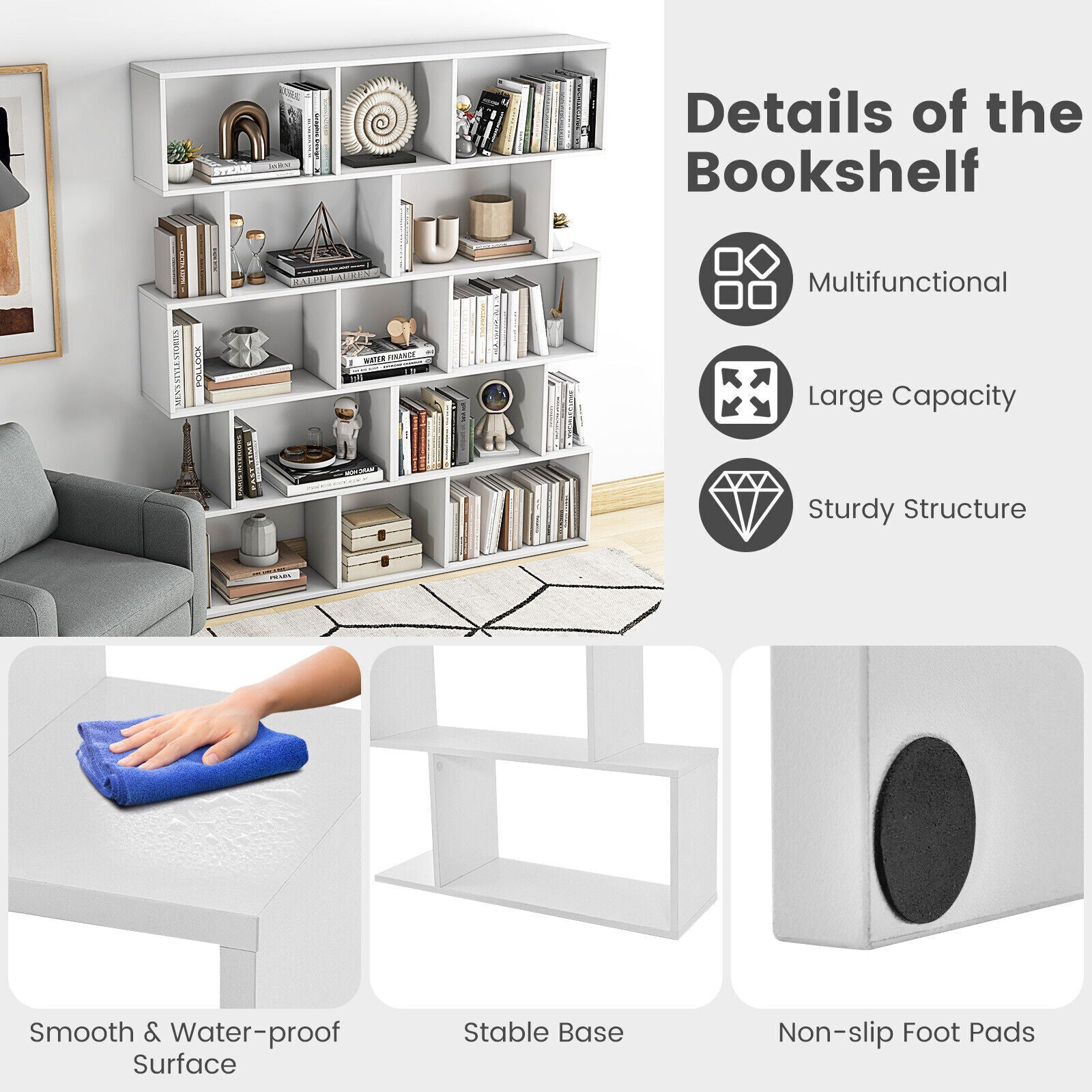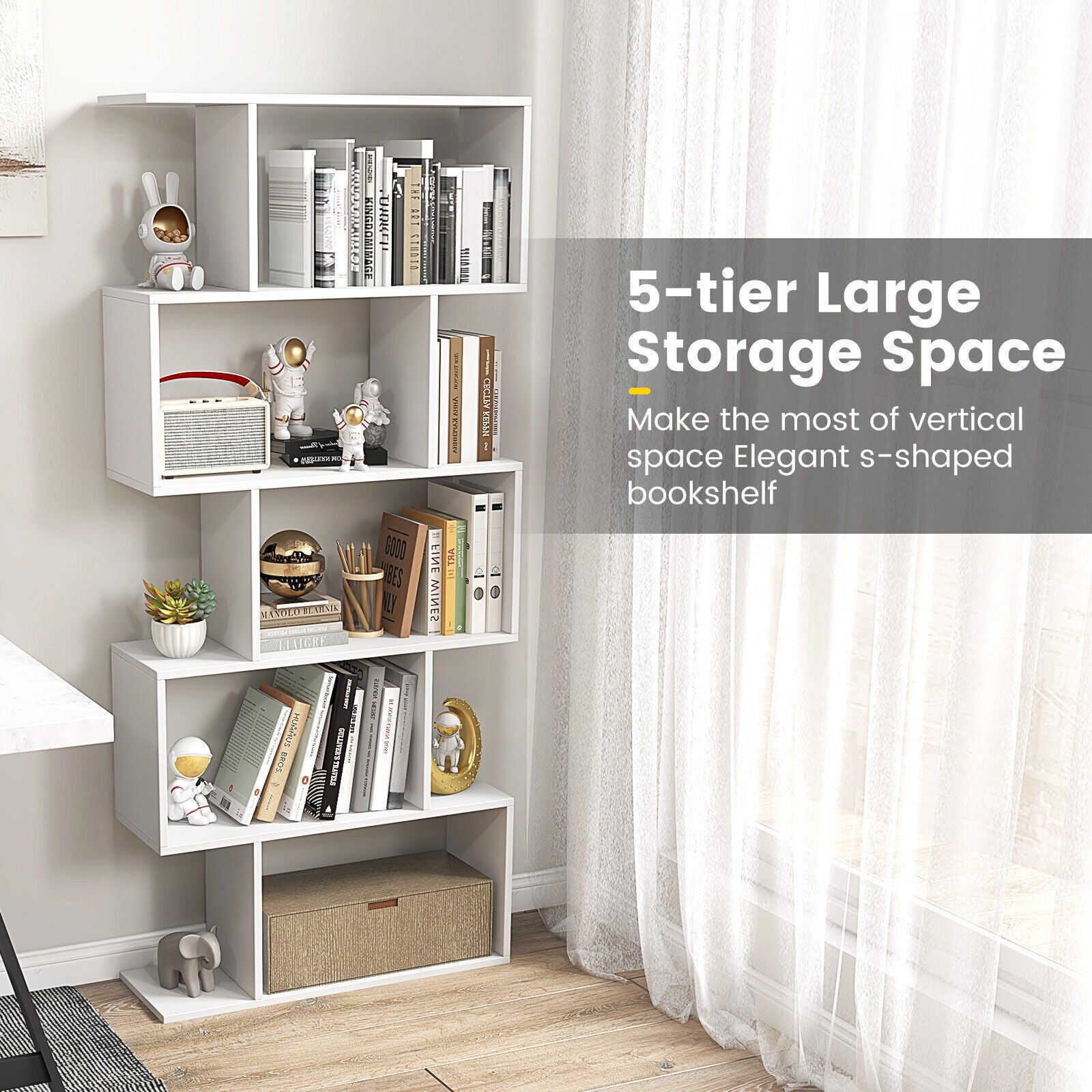 5-Tier Bookshelf Geometric S-Shaped Bookcase Modern Display Shelf-White