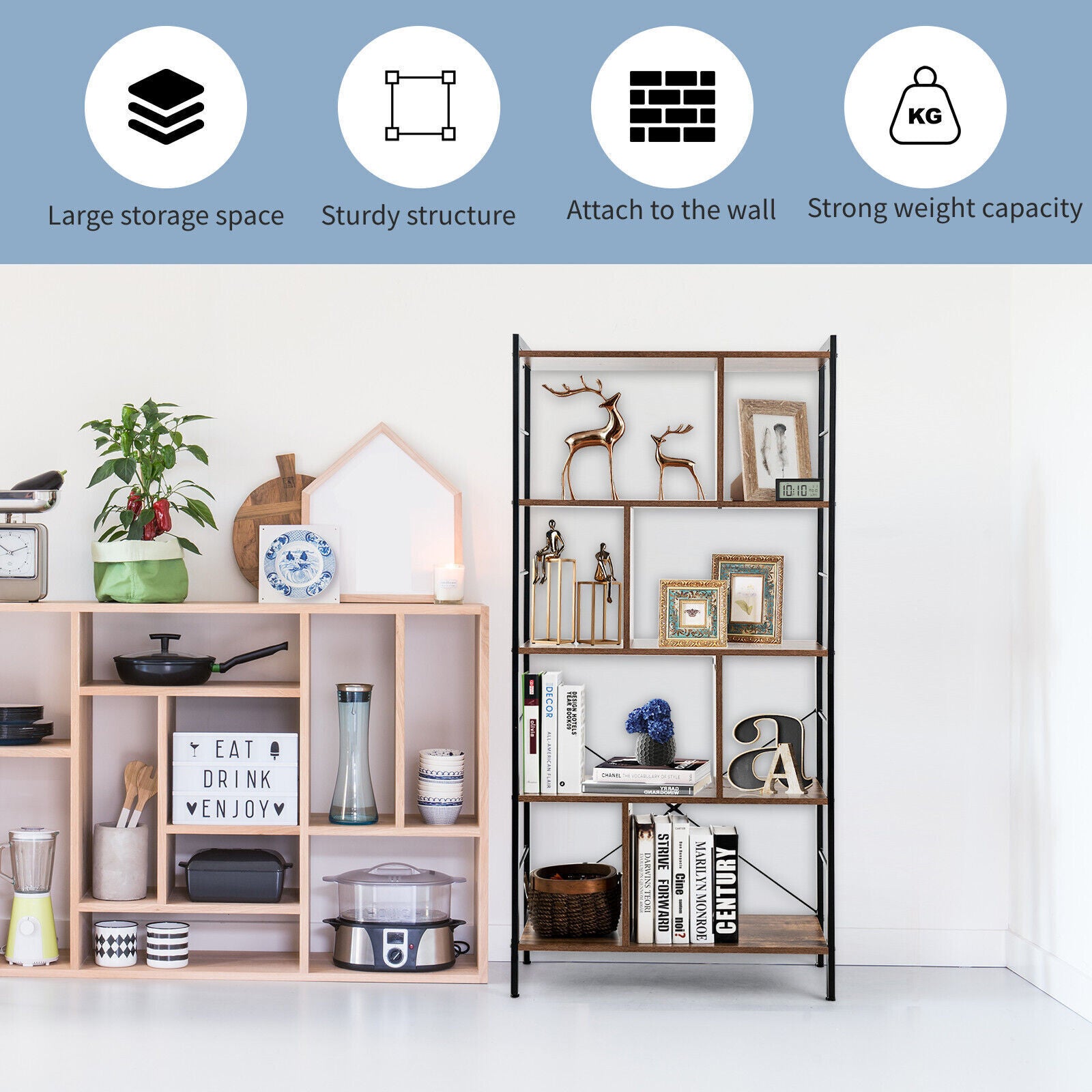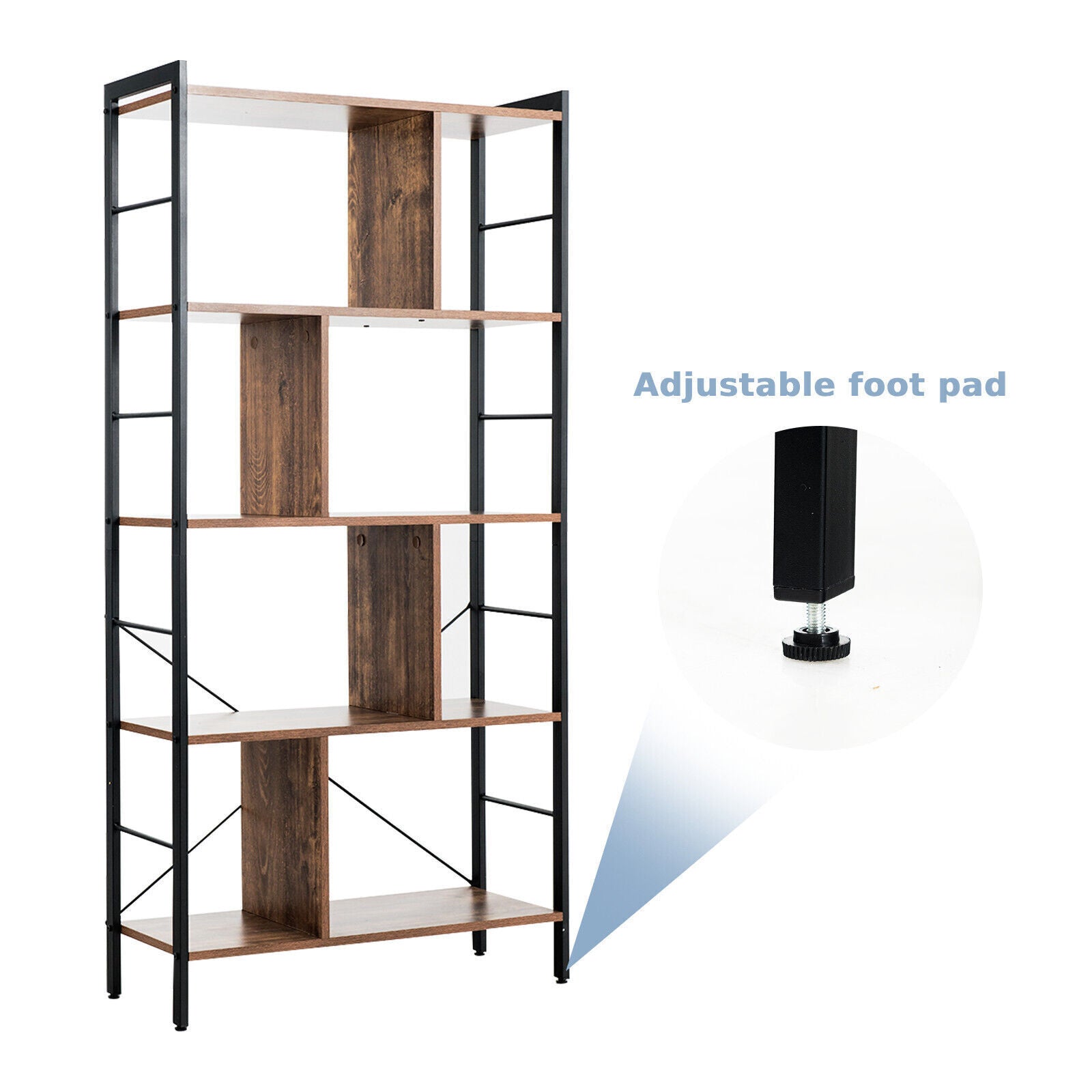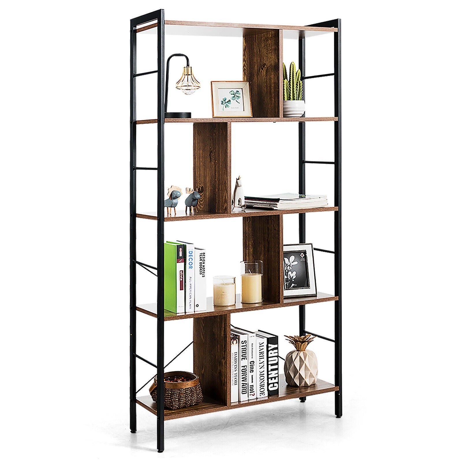 5-Tier Bookshelf Industrial Style Bookcase Free Standing Storage Display Shelves