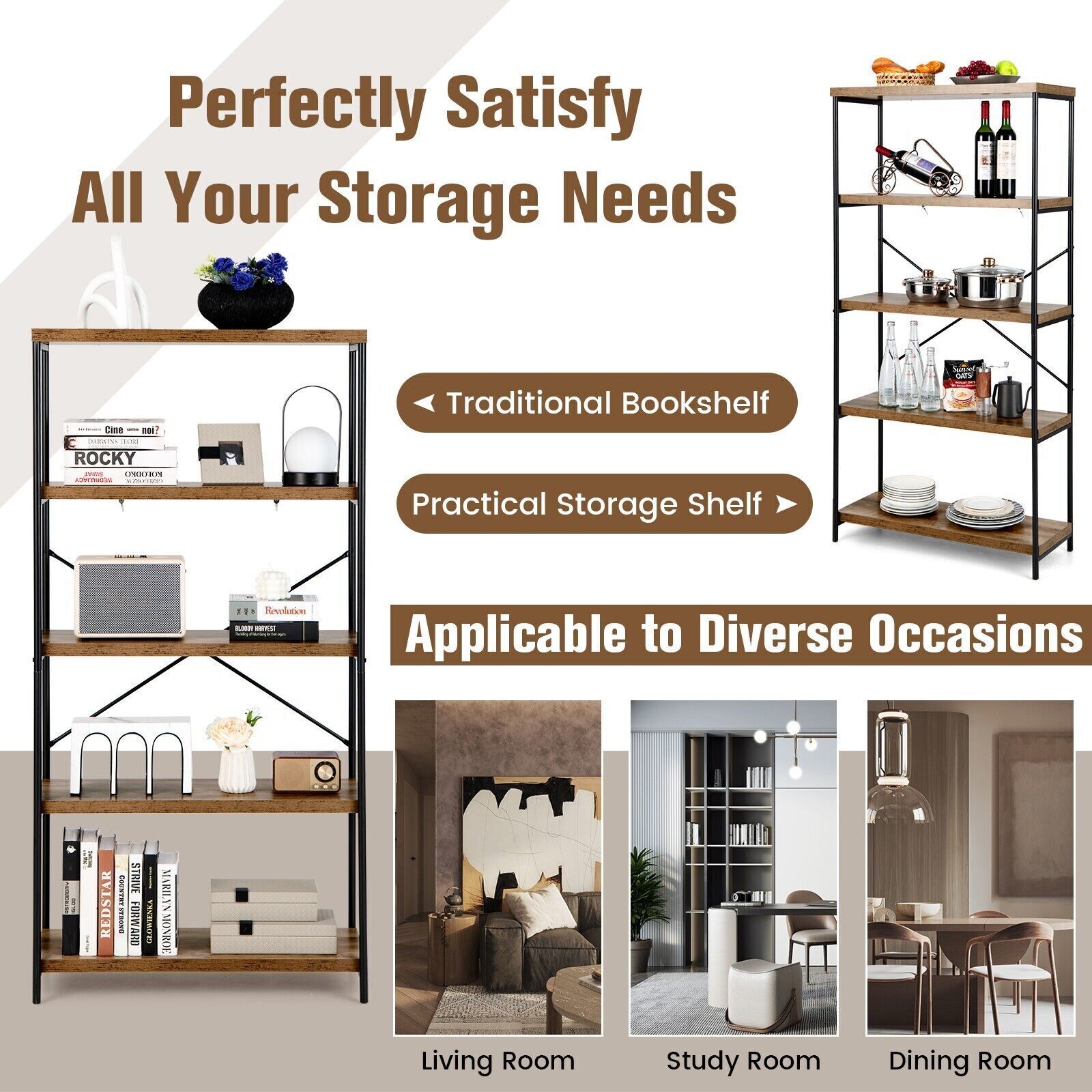5-Tier Bookshelf Industrial Wood Bookcase Freestanding Display Rack Organizer