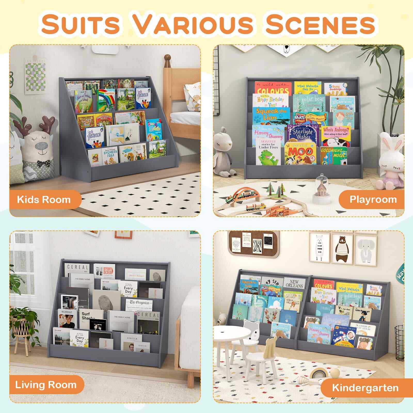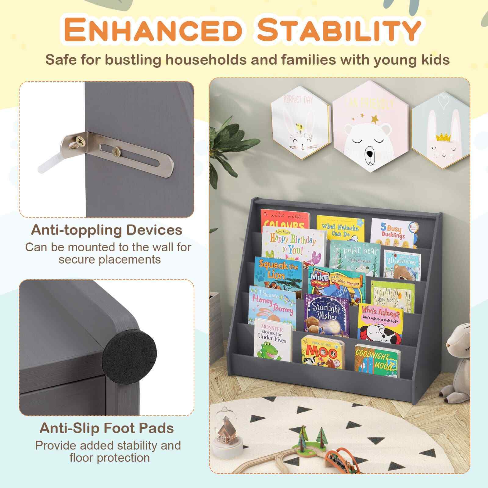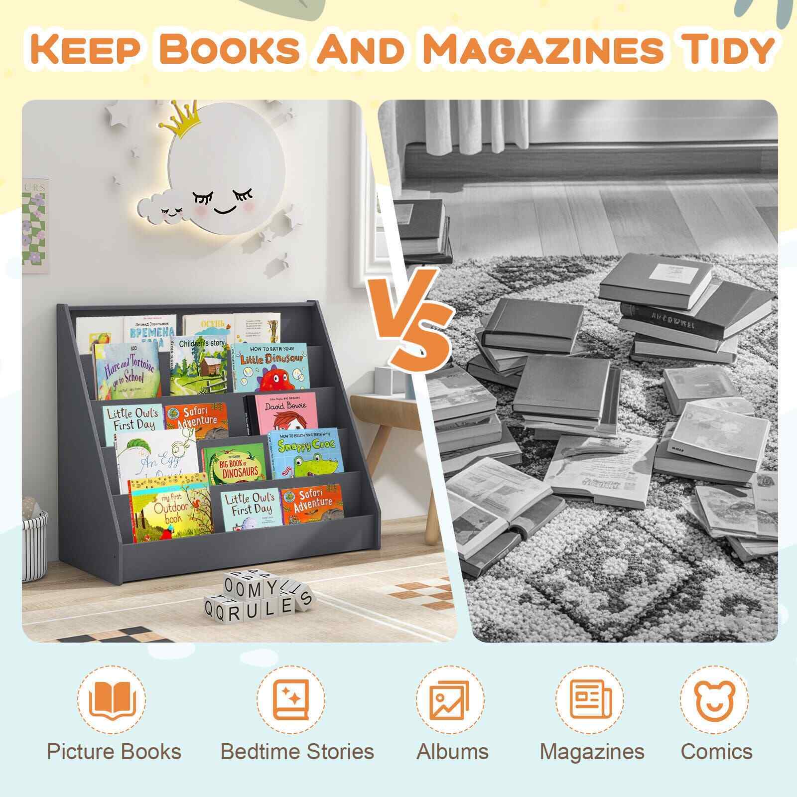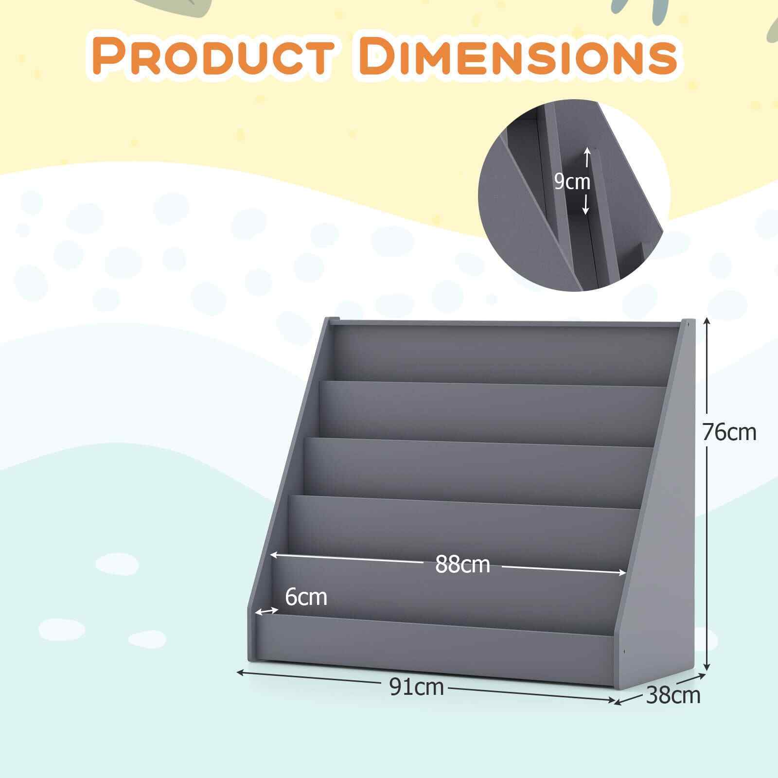 5-Tier Children Bookcase Magazine Storage & Display Rack-Grey