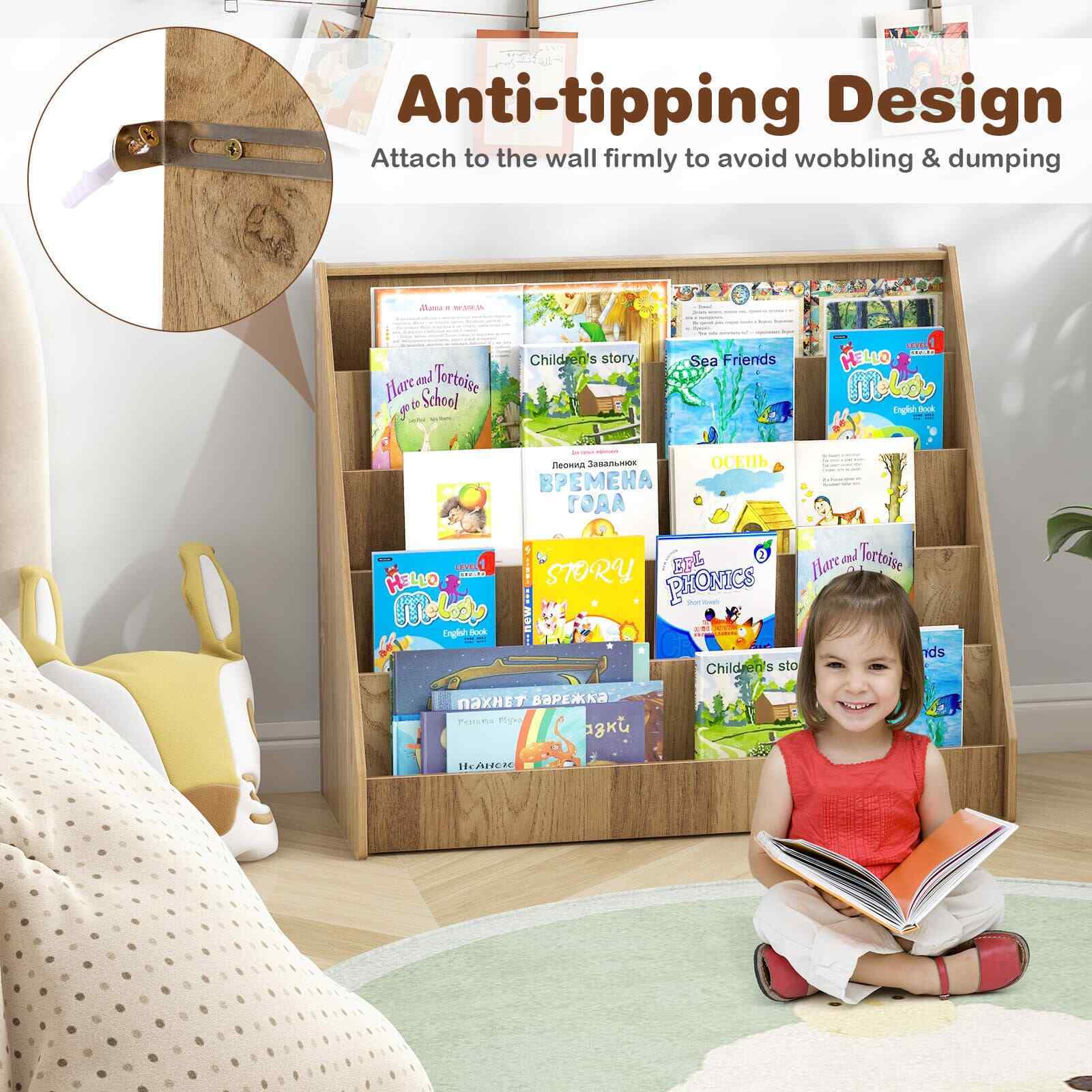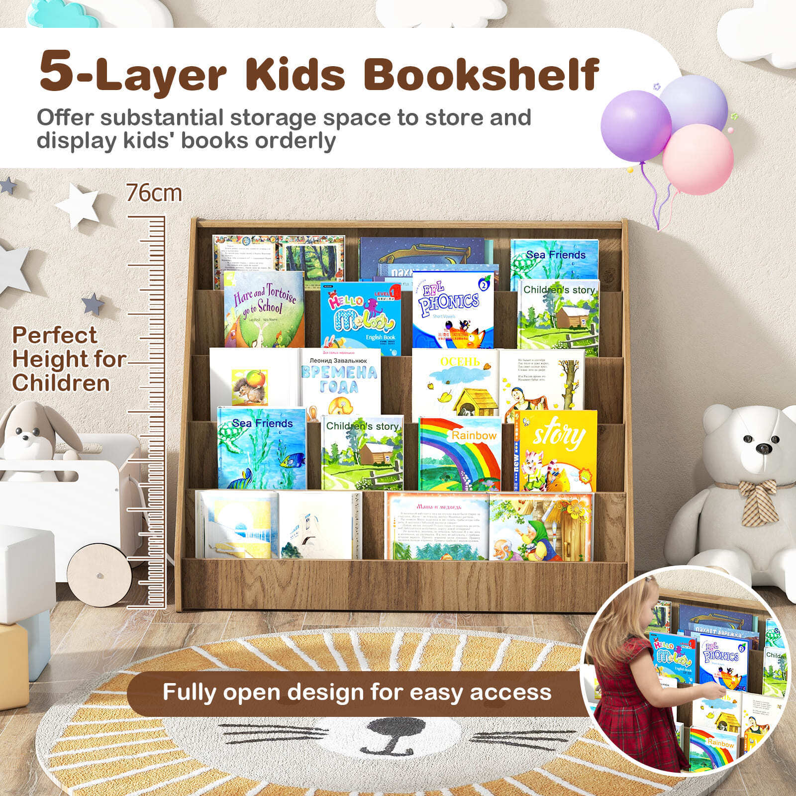 5-Tier Children Bookcase Magazine Storage & Display Rack-Natural