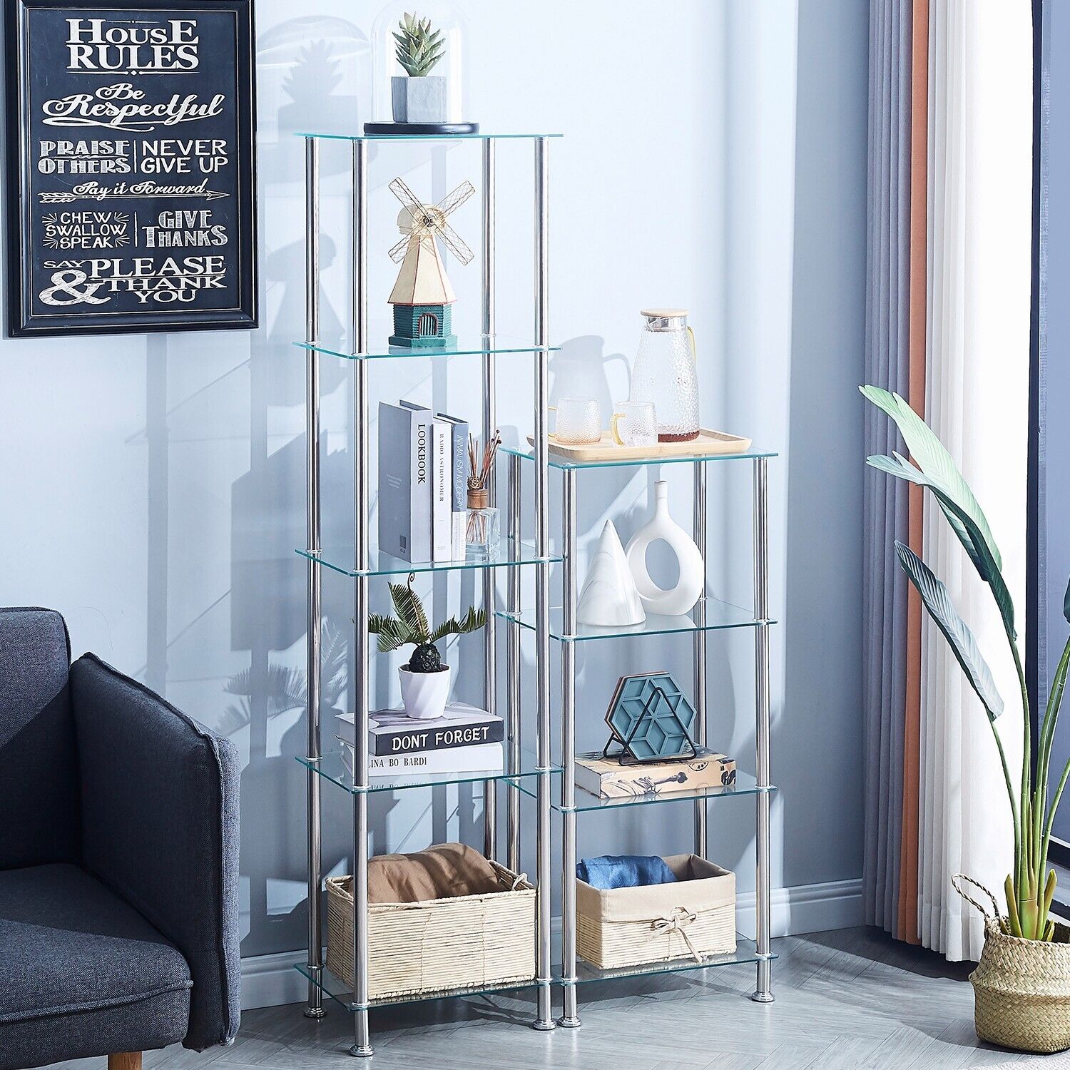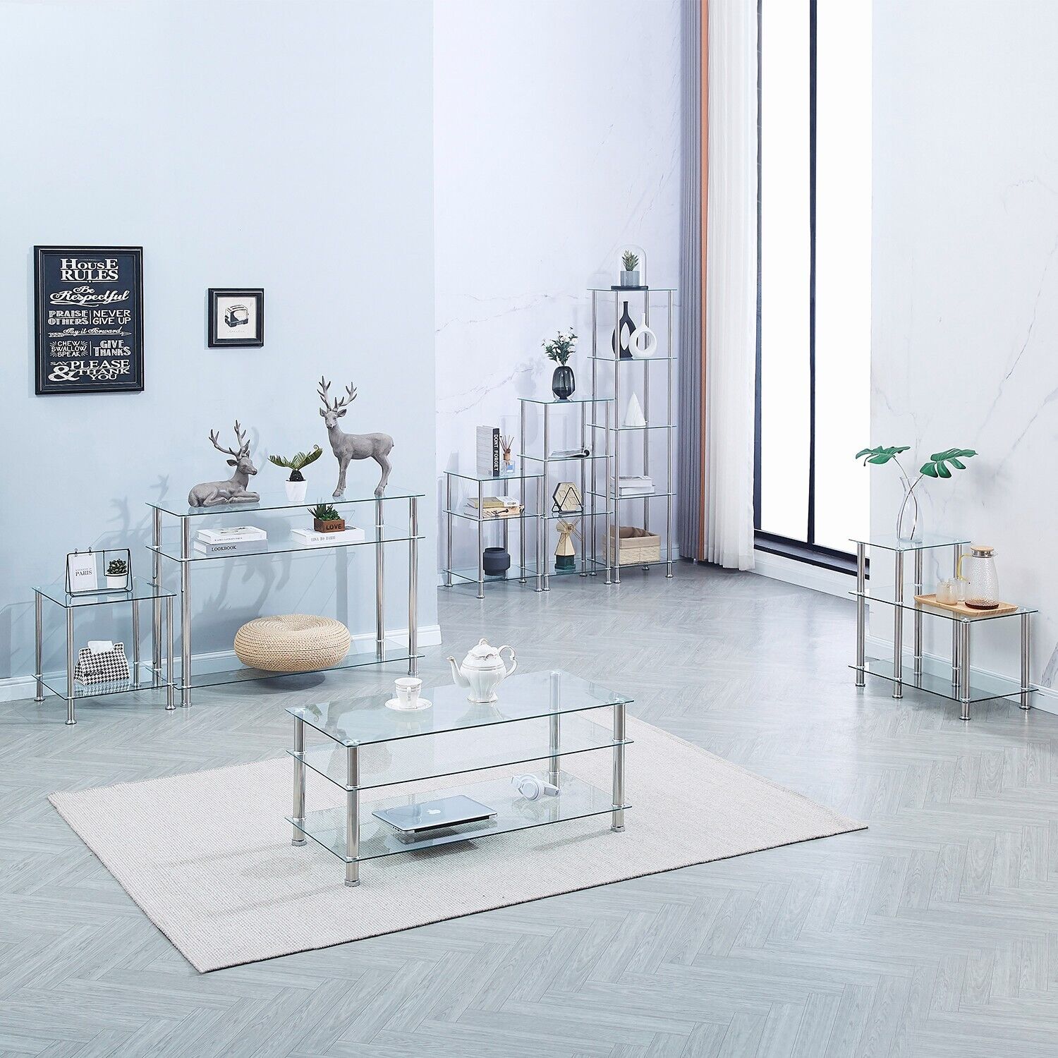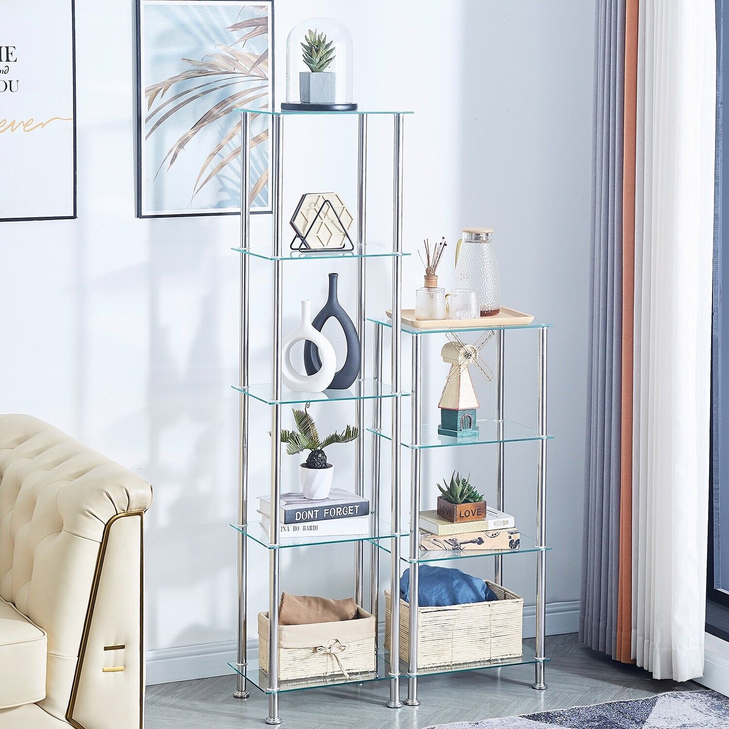 5 Tier Clear Tempered Glass Shelving Unit Bathroom Storage for Towels Cosmetics