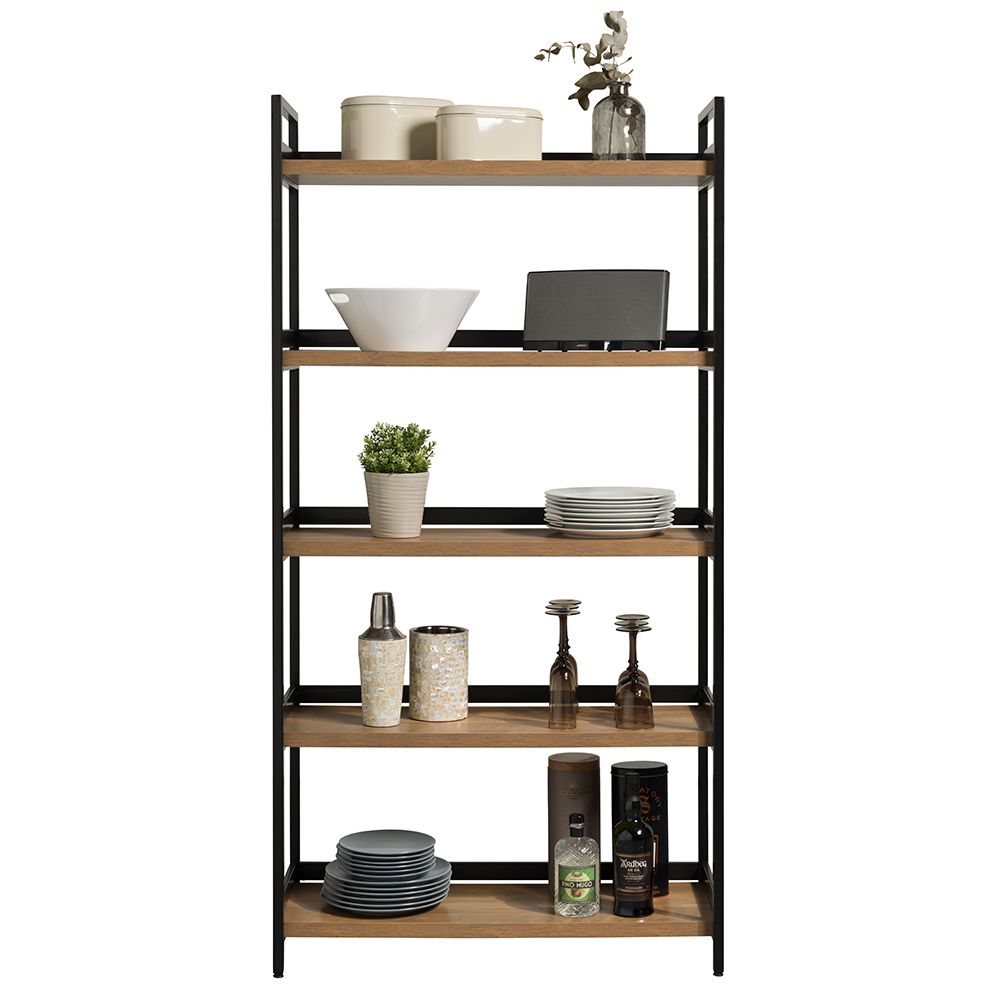 5 Tier Contemporary Industrial Bookshelf/Shelving Unit Oak finish 1750mmH