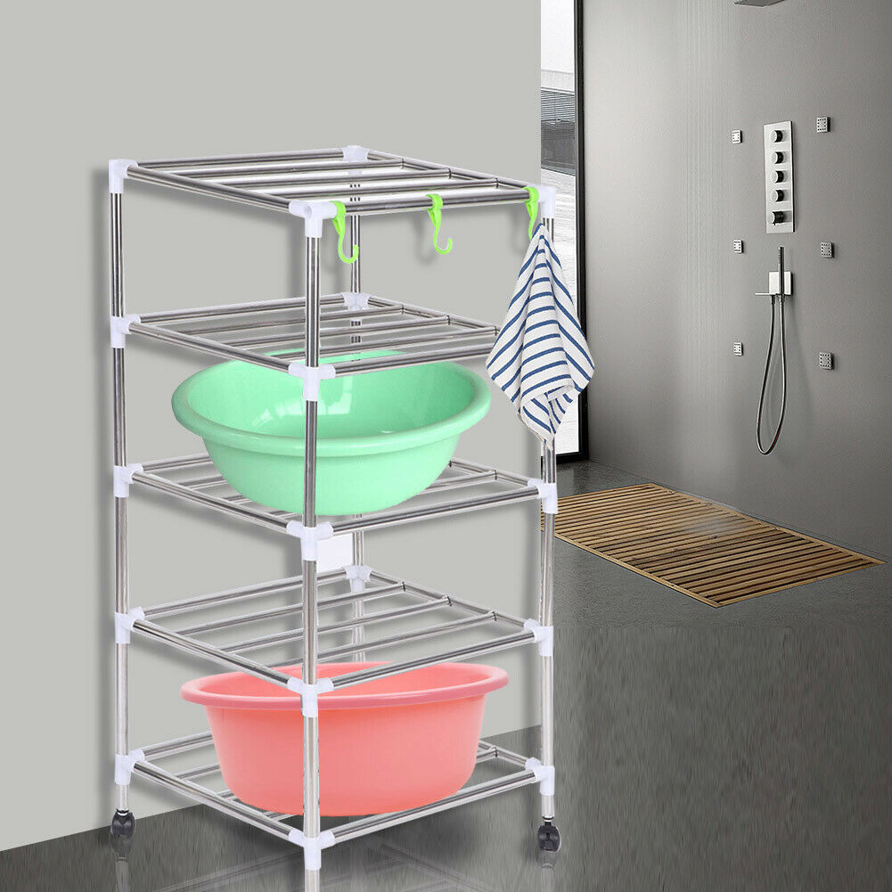 5 Tier Corner Plate Kitchen Bathroom Cupboard Organiser Tidy Storage Rack Stand