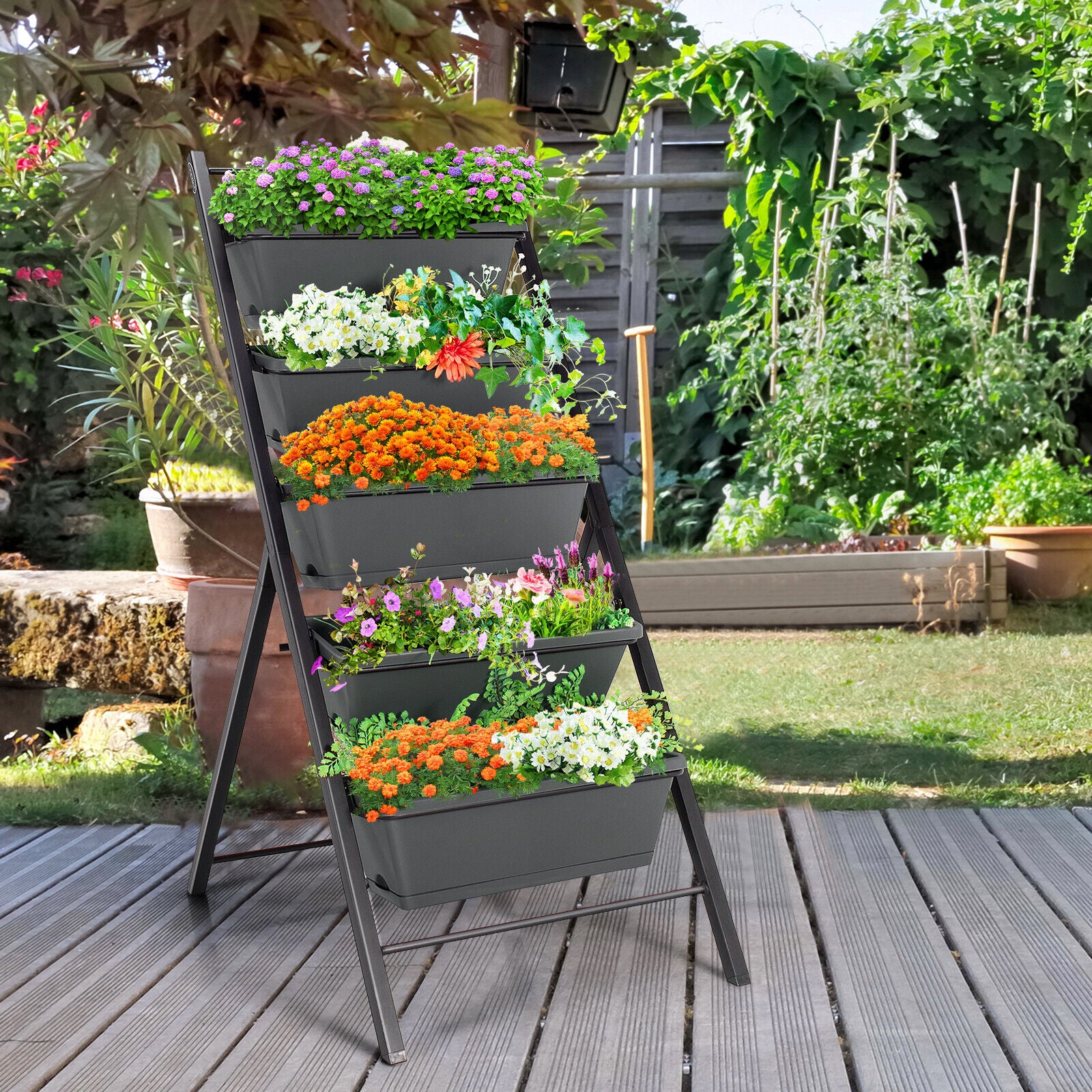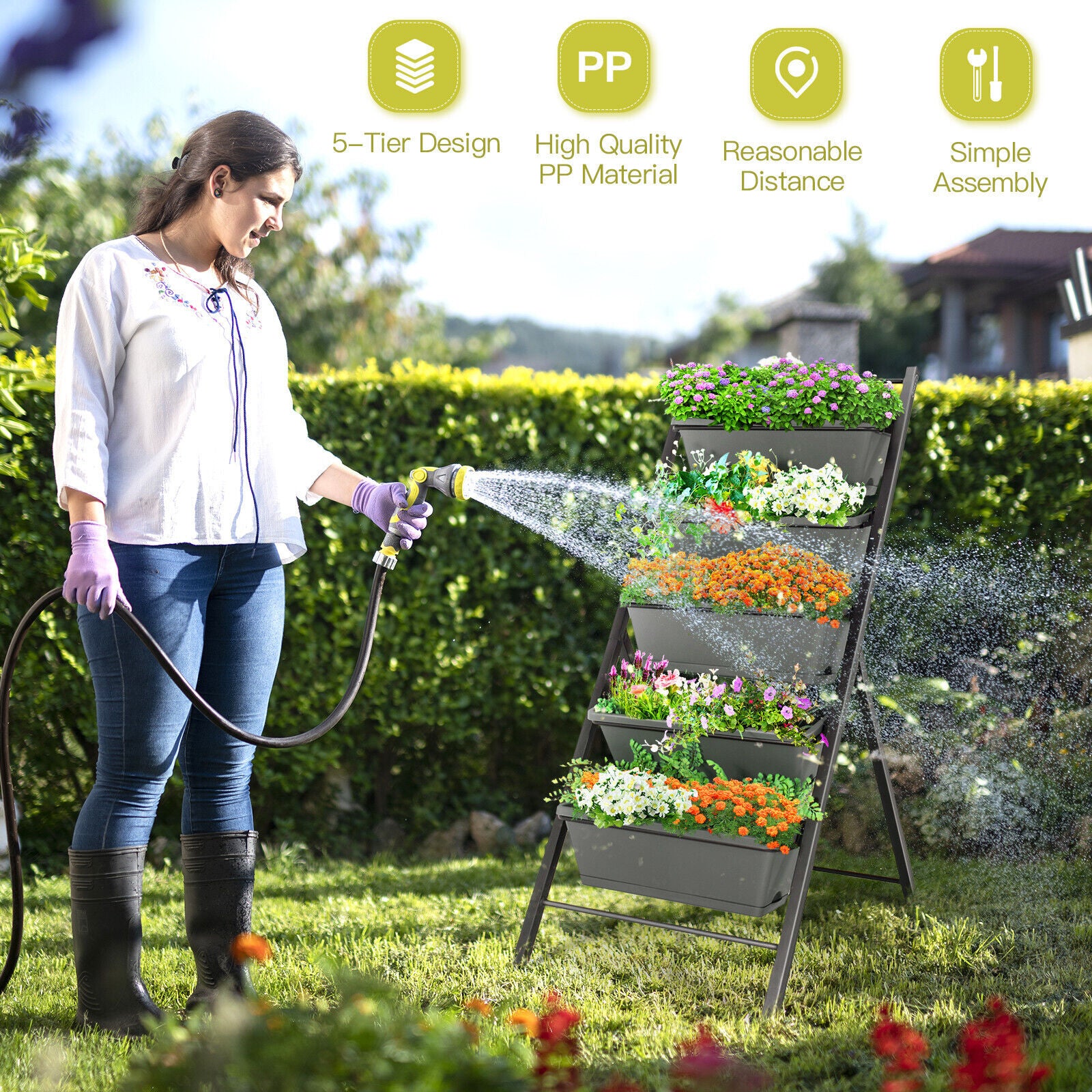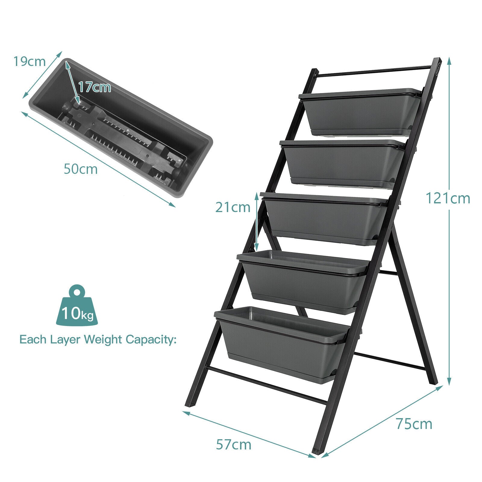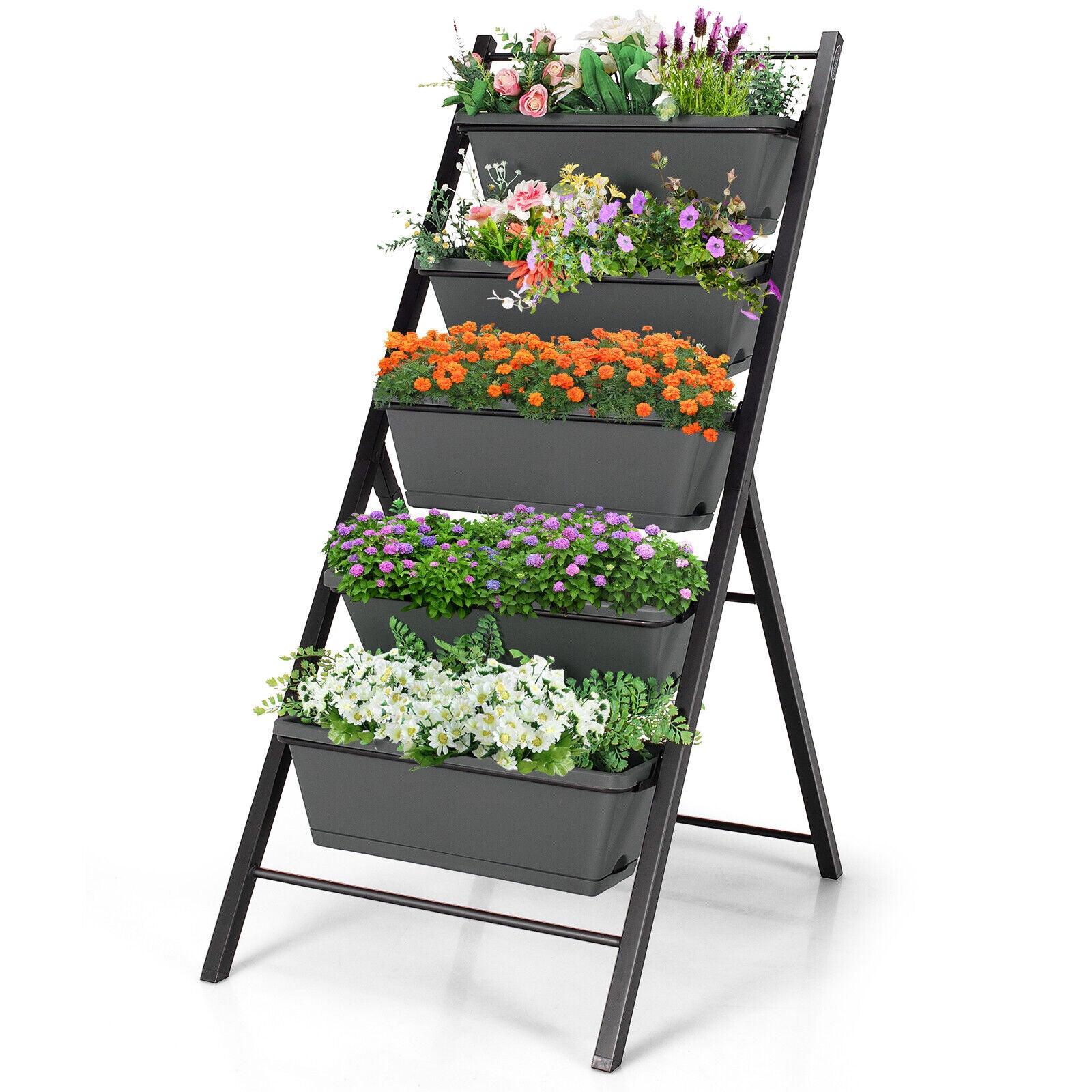 5-Tier Flower Stand Vertical Raised Garden Bed Garden Planter w/ 5 Container Box