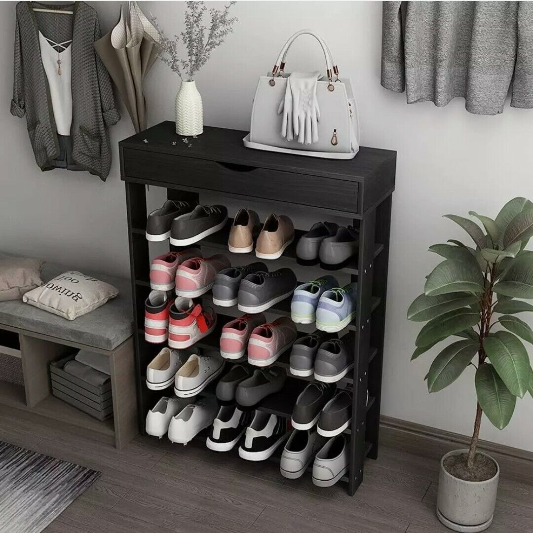 5-Tier Free Standing Shoe Rack, Soges 29.5 Inches Wooden Shoe Shelf, Entryway Sh