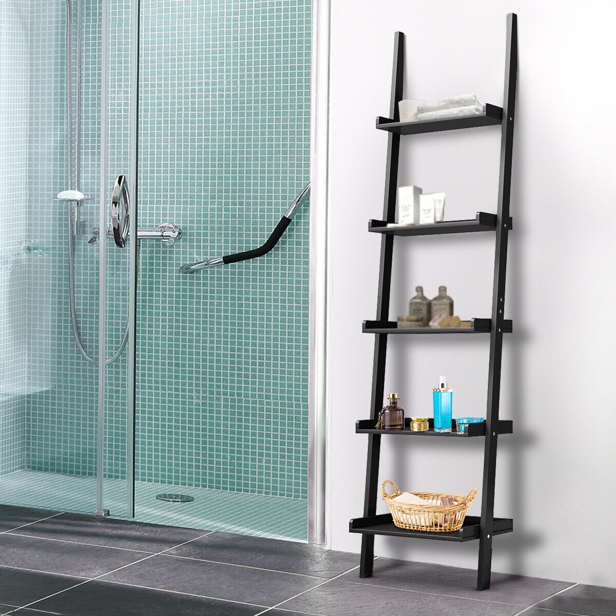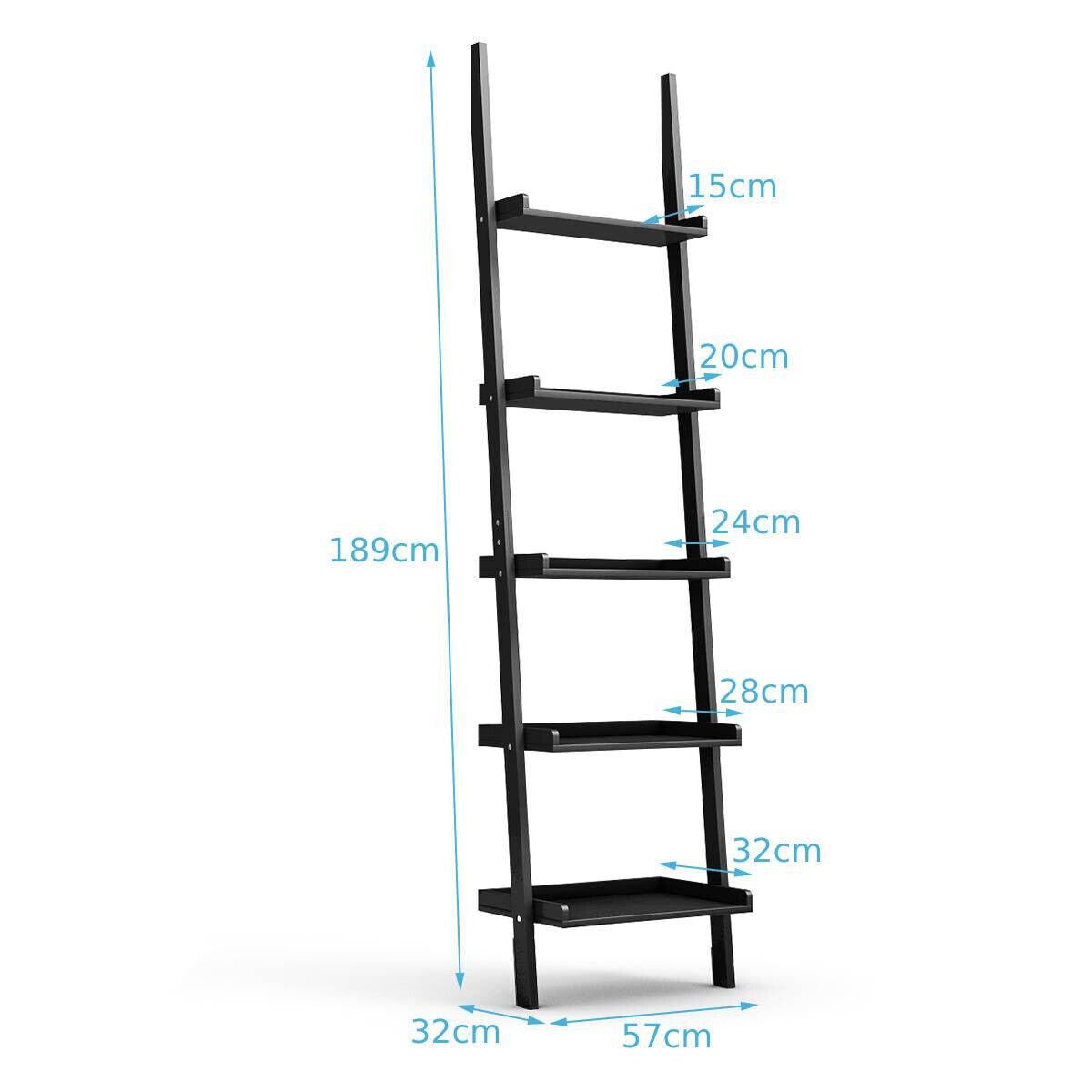 5-Tier Freestanding Ladder Shelf Decorative Plant Flower Stand Bookshelf Black