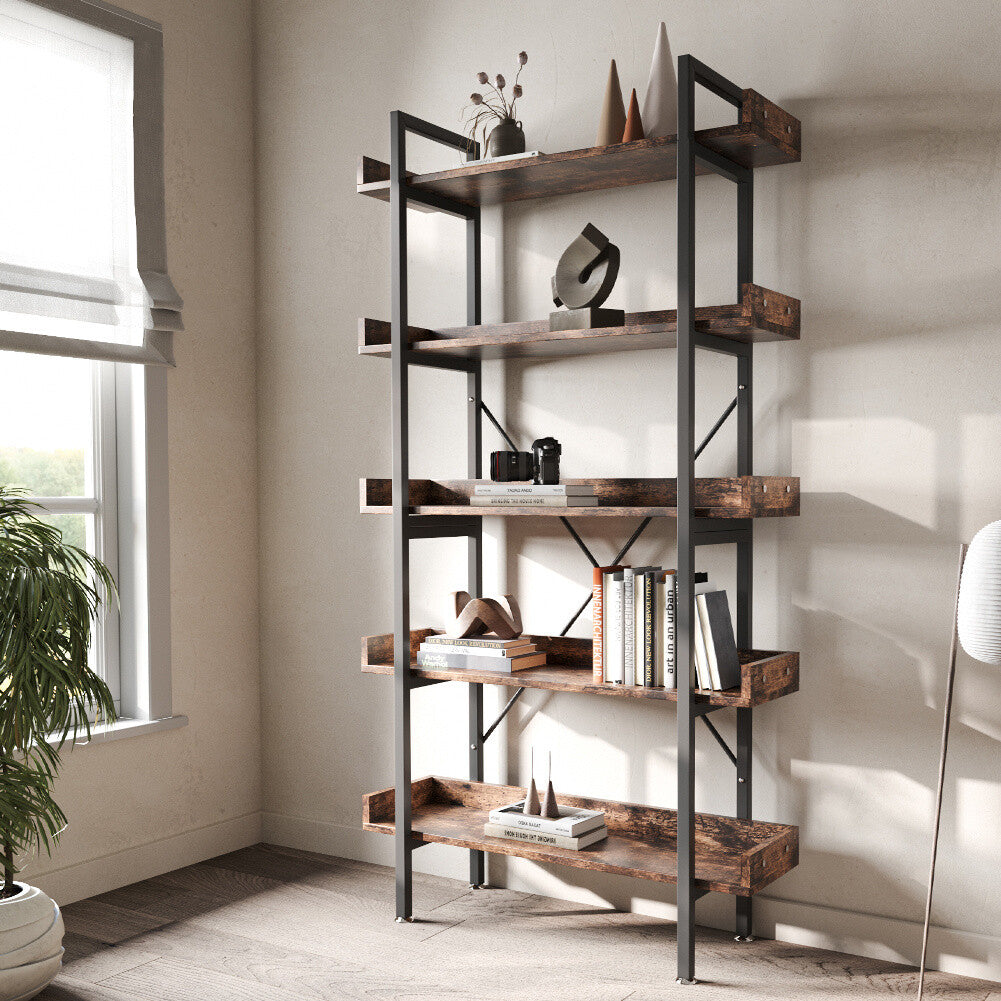 5 Tier Industrial Bookcase Bookshelf Rustic Wood Storage Display Shelving Unit