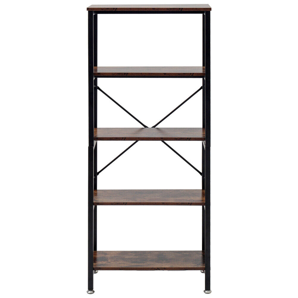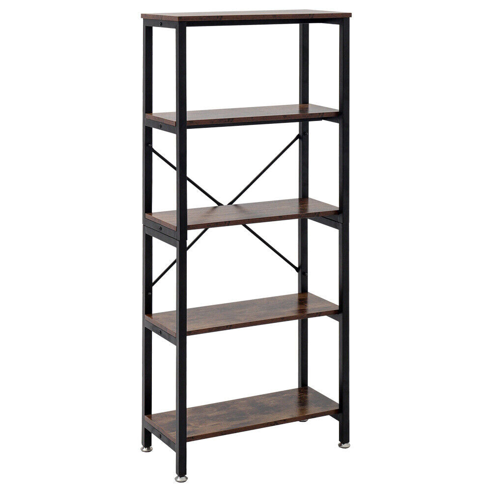 5 Tier Industrial Bookcase Shelves Wood & Metal Ladder Metal Pipe Bookshelf Unit