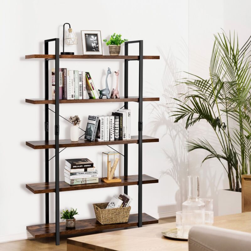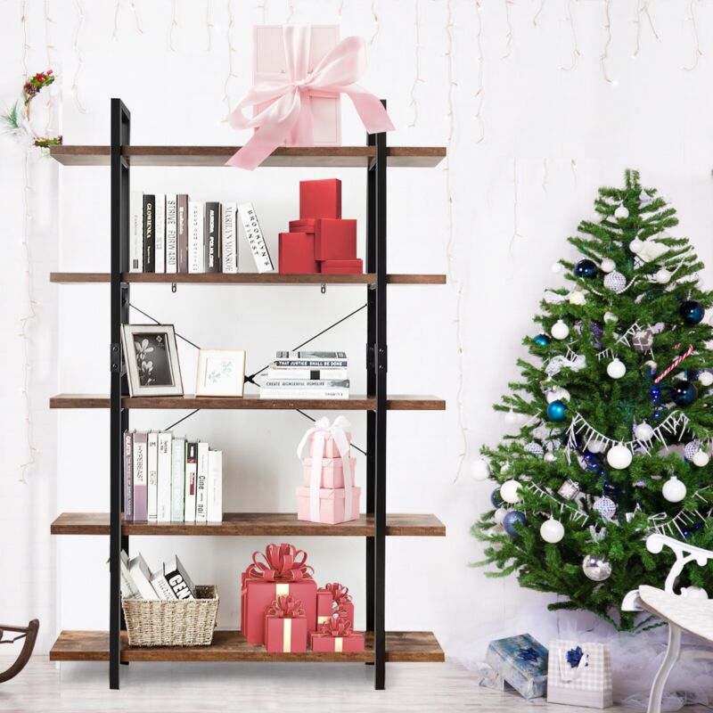 5-Tier Industrial Bookshelf Vintage Bookcase Wooden ladder shelf plant stand