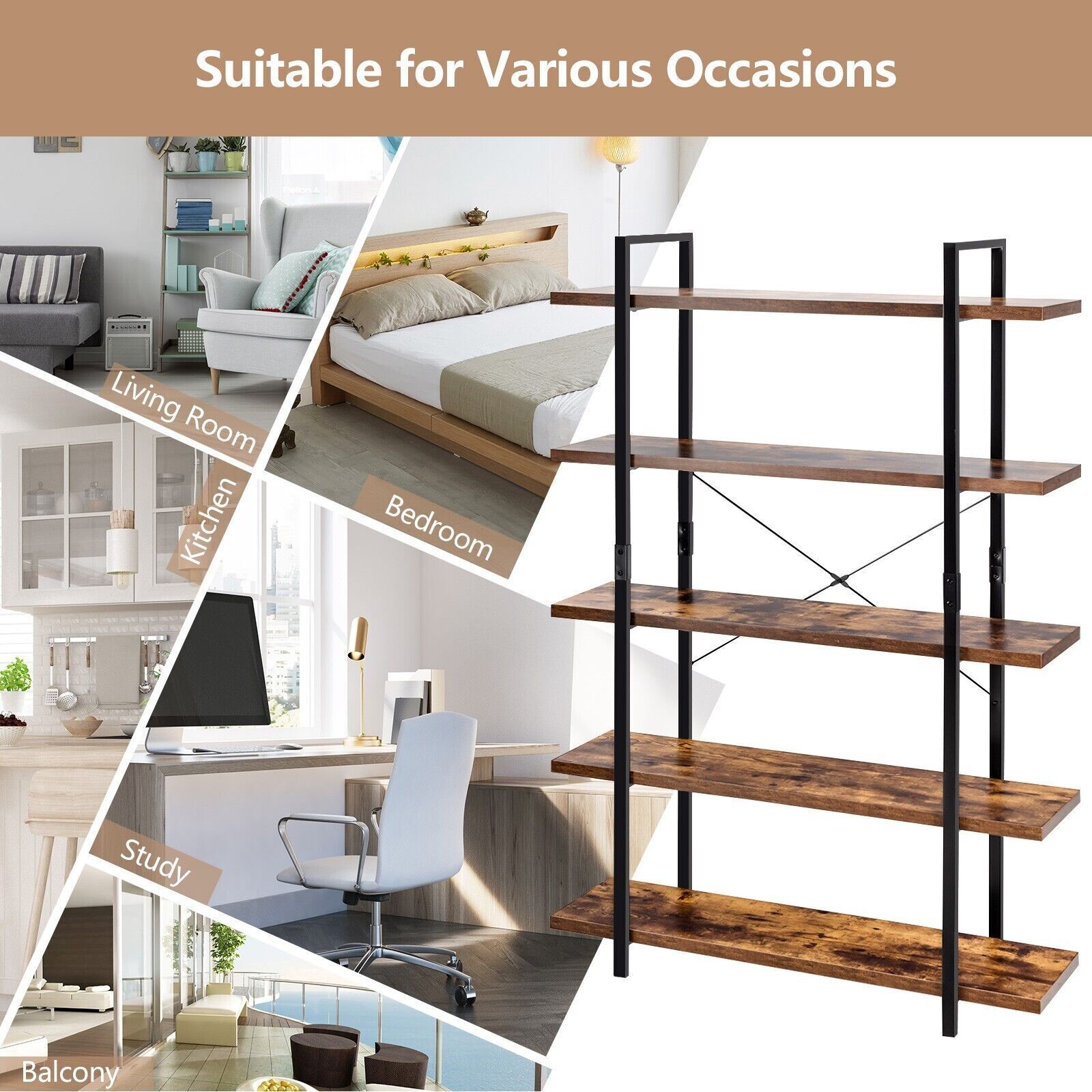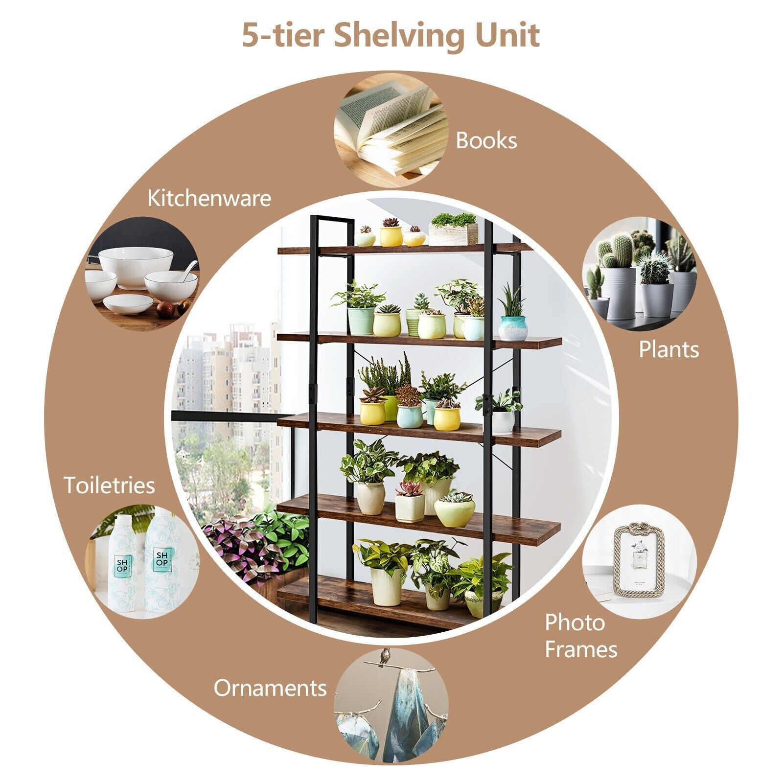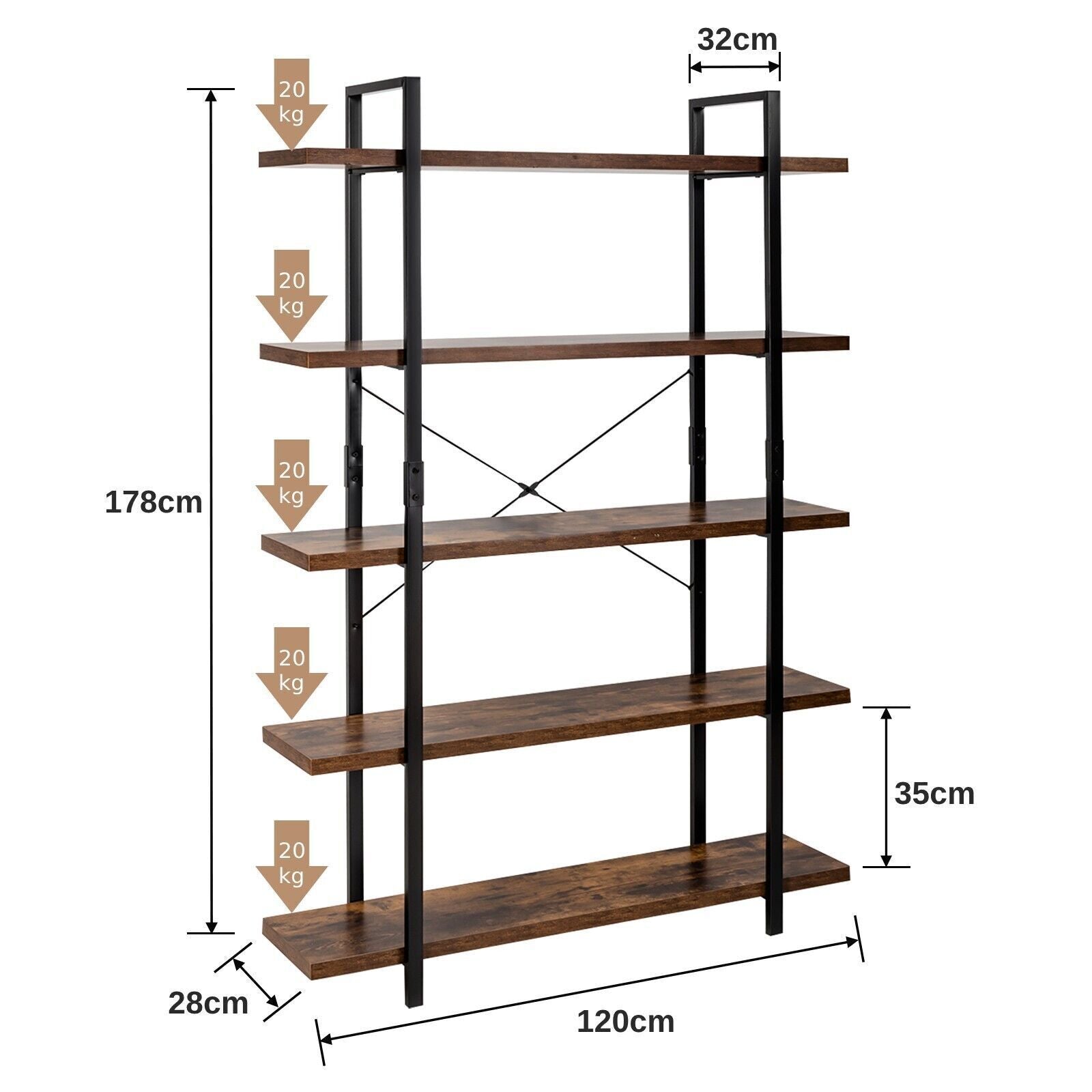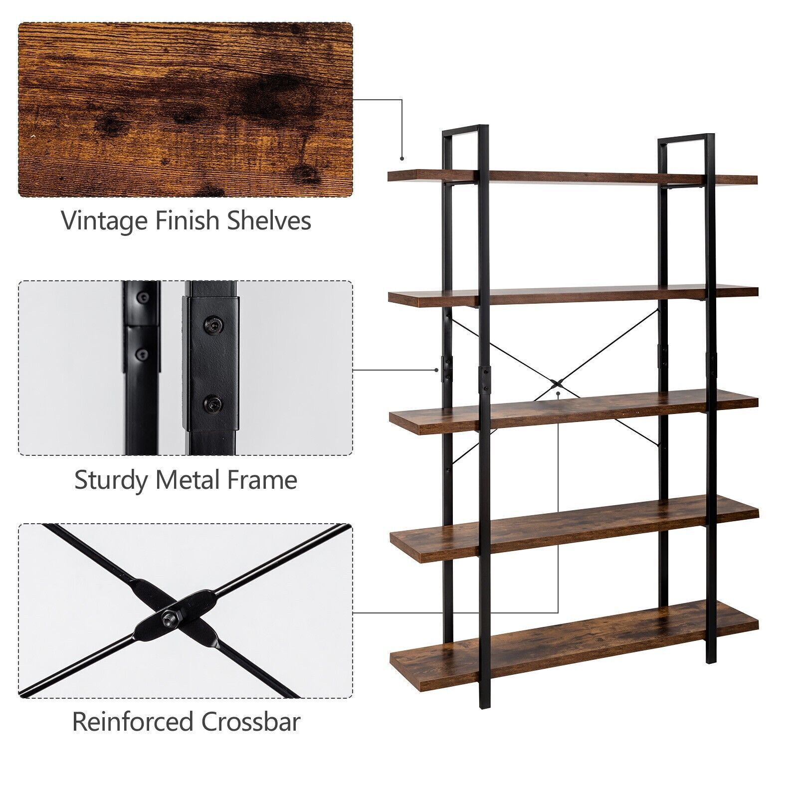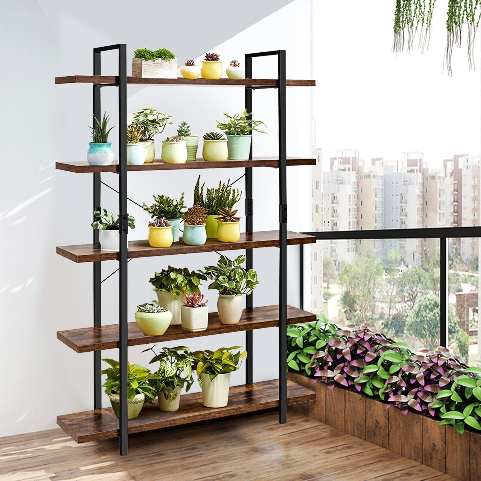 5-Tier Industrial Bookshelf Vintage Bookcase Wooden ladder shelf plant stand