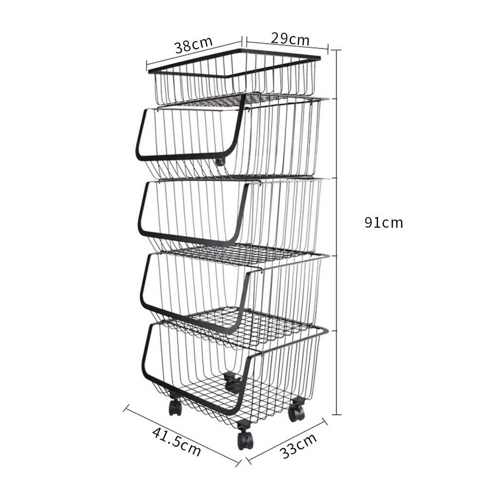 5 Tier Kitchen Fruit Vegetable Storage Rack Rolling Metal Organizer Basket Shelf