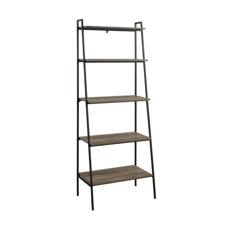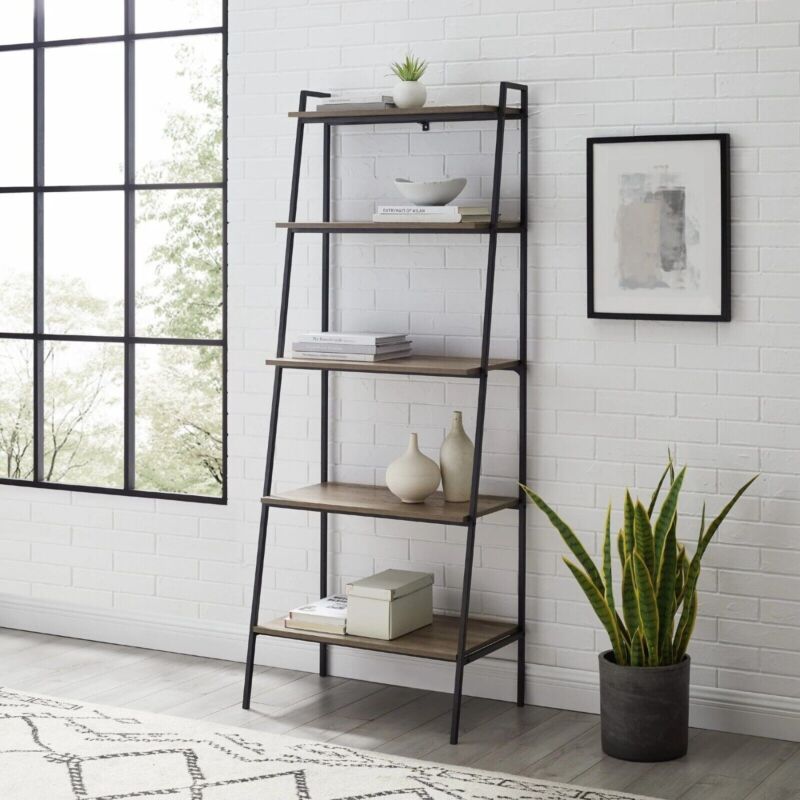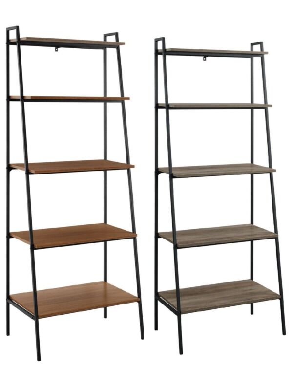 5 Tier Ladder Bookshelf Wooden & Metal Rack Shelving Open Storage Unit Bookcase