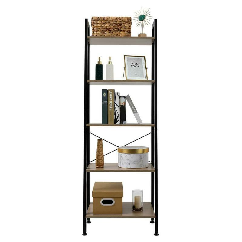 5 Tier Ladder Shelf Bookcase Bookshelf Storage Rack Metal Frame Display Stand