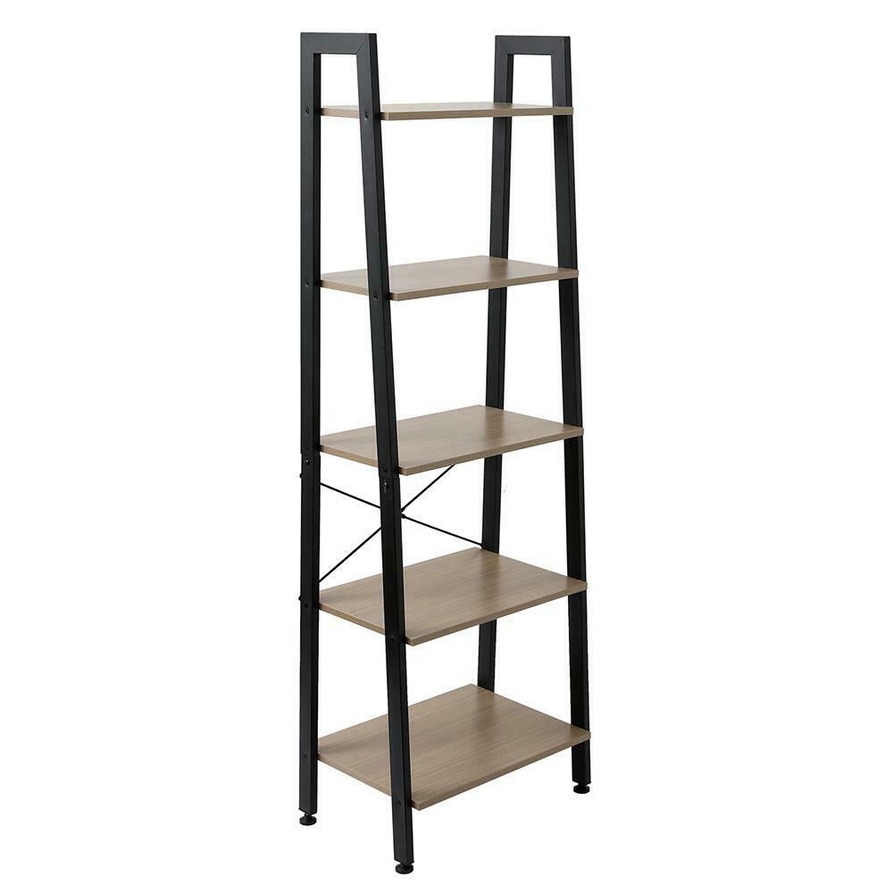 5 Tier Ladder Shelf Bookcase Bookshelf Storage Rack Metal Frame Display Stand
