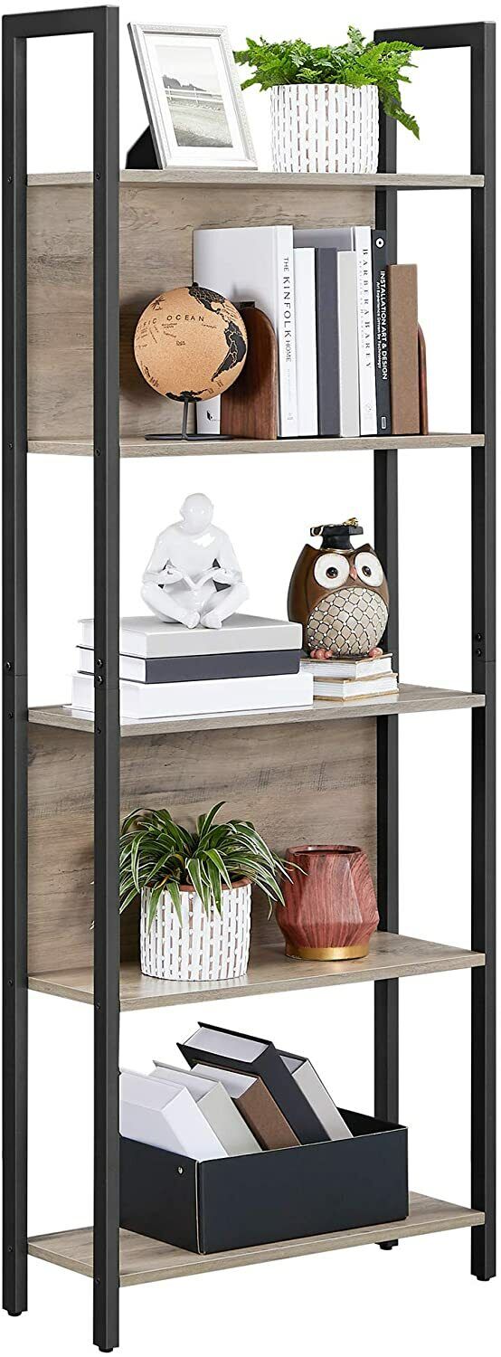 5 Tier Ladder Shelf Bookcase Industrial Storage Rack Metal Frame Display Stand